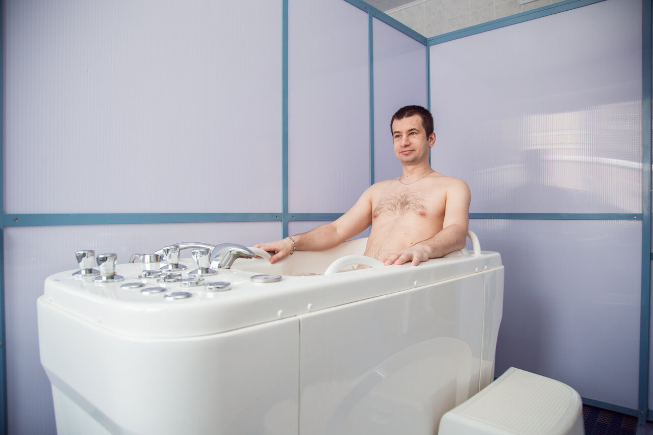 Очень понравилось отдыхать в этом санатории. Для проживания предоставляются номера в корпусе на втором и третьем этаже и в коттеджах. На нулевом и первом этаже кабинеты для прохождения процедур. Бассейн не очень большой, есть подводный гейзер, водопад и пушки- массажёры. Сеанс 45 минут, проводят аквааэробику 15 минут.