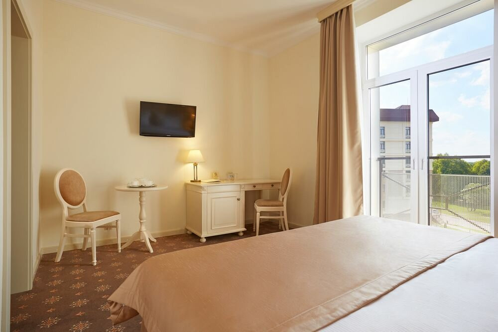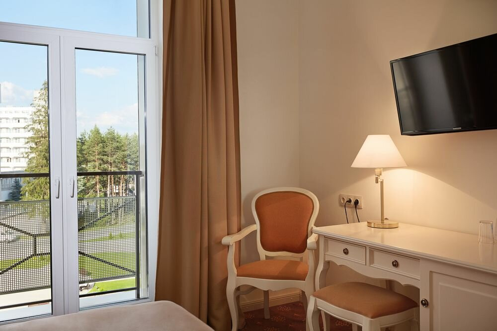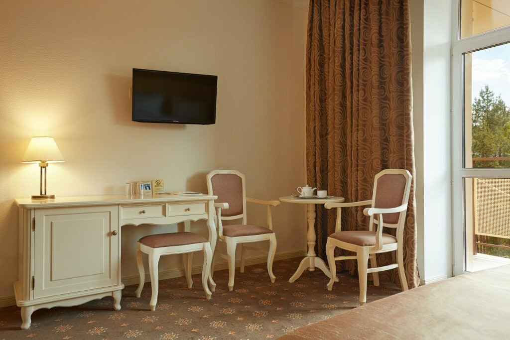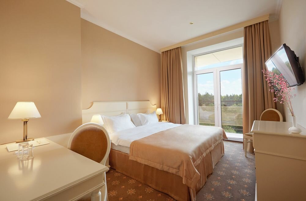 Были в санатории с подругой. Проходили двухнедельное лечение коленных суставов. Путевки заказывали за 2 месяца, получили 10 процентную скидку. Санаторий расположен в очень живописном месте в Гродненской области, Дятловском районе. Много зелени, птицы щебечут, на реке Паниква живут утки, лебеди, много рыбы. Санаторий лучше всяческих похвал. Отличные отремонтированные номера с балконом. Шикарная лечебная база. Радоновые и грязевые ванны, все виды лечения опорно двигательного аппарата, вытяжение позвоночника в радоновой воде, криотерапия, ударноволновпя терапия, обкалывание газовыми уколами болевых зон, физиотерапия, лазерная м магнитотерапия и т.д и т.п. Питание пятиразовое, заказное меню. Очень вкусно, но очень много. На ночь кефир. Каждые три дня бутылка минералки. Хорошая культурно развлекательная программа, экскурсии, вечером дискотека. Очень понравилось, доброжелательный персонал, приветливый, все для людей. Поедем ещё обязательно.