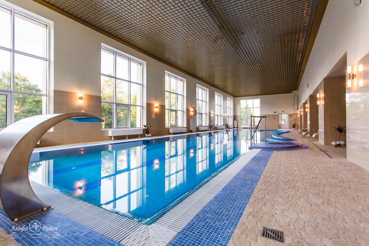 Бассейн не большой и без выделенных дорожек для активного плавания. Раздевалки очень маленькие - трудно поместиться даже трем людям. Нет контроля за грибковыми инфекциями при допуске в бассейн, что легко организовать в санатории.