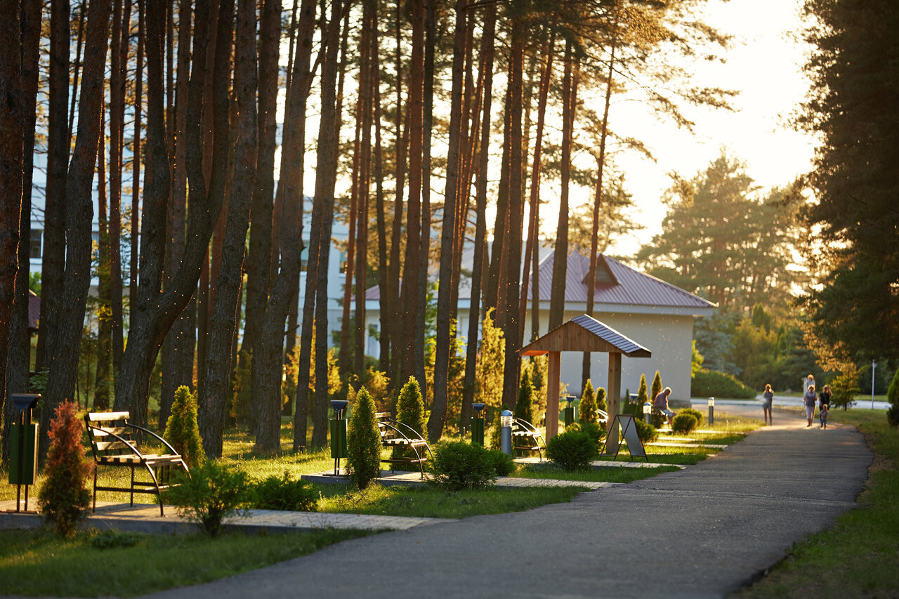 Территория большая, но ею пользуются так же отдыхающие более бюджетного санатория Родон. На территории много элементов, требующих ремонта. Организованы пляжные зоны, но не представлена служба спасения. Организованы в лесном массиве дорожки для активных занятий с размеченными маршрутами разной продолжительности, что очень привлекательно, но указатели в 80% случаев сломаны и ориентироваться не возможно. Мы заблудились и ушли очень далеко в результате. Сами дорожки не пригодны для бега и быстрой ходьбы. Лес не окультуренный, много сухостоя и упавших деревьев/веток. Задумка очень хорошая, но реализация не позволяет пользоваться.