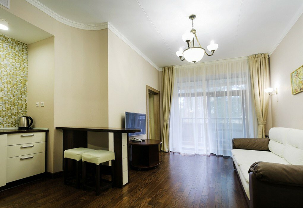 Санаторий понравился. Территория ухоженная, большая. Медицинская база очень достойная, большое разнообразие различных процедур, правда много платных, но это везде так. Всё продумано для проведения досуга. Питание как шведский стол так и заказное меню, кому как удобно. Из замечаний можно отметить отсутствие перехода между ФОКом и лечебным корпусом, где проводятся все процедуры, в хорошую погоду это не имеет значения, а вот в плохую закрытый переход был бы очень кстати. Так что очень достойный санаторий. Про наличия аквапарка даже не указываю, так как и так понятно что это очень поднимает рейтинг данного заведения, особенно если учесть что это единственный санаторий в Беларуси с аквапарки ( если не ошиблась).