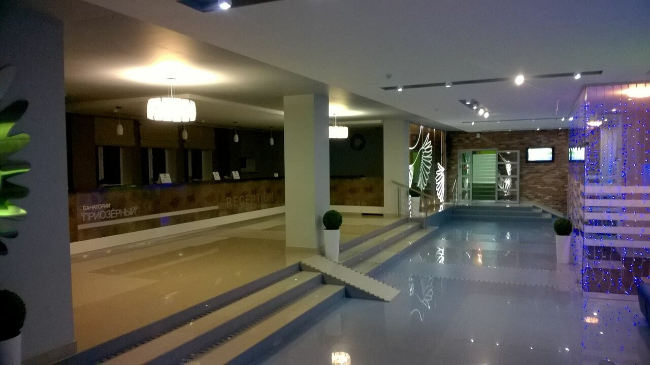 В санатории Приозёрный я находился вынужден, был на карантине и отбывал "срок". Поэтому о санаторном лечени и развлечениях я ничего сказать не могу. Практически две нелели я находился в номере. И только за день до отъезда можно было погулять. Поэтому могу только сказать, что територрия ухожена и выглядит красиво. Хорошее место расположения - сразу за забором начинается лес. Не очень далеко находится озеро Нарыч, где летом можно купаться (видел спасательную станцию и простенький пляж). Кормили не плохо, на четыре с плюсом. В номере есть чайник и маленький холодильник.