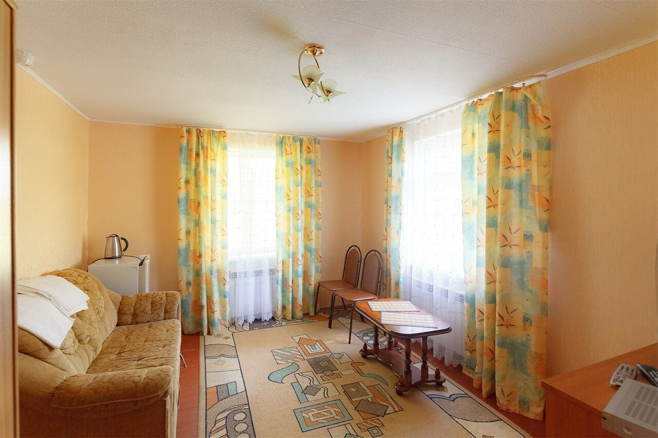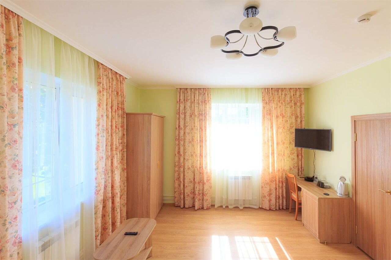 Основной корпус №1: 1 этаж- столовая, лечебные кабинеты. 4 этаж – танцевальный зал и зал ЛФК, фитобар, кабинеты массажа, косметологии и физиотерапии. Во всех номерах основного корпуса: ванна, туалет, умывальник, ТВ, холодильник, балкон, электрочайник. В основном корпусе 4 одноместных номера, 8 одноместных номеров повышенной комфортности, 11 стандартных двухместных номеров, 4 двухкомнатных номера полулюкс и по одному номеру "люкс" и "студия".
