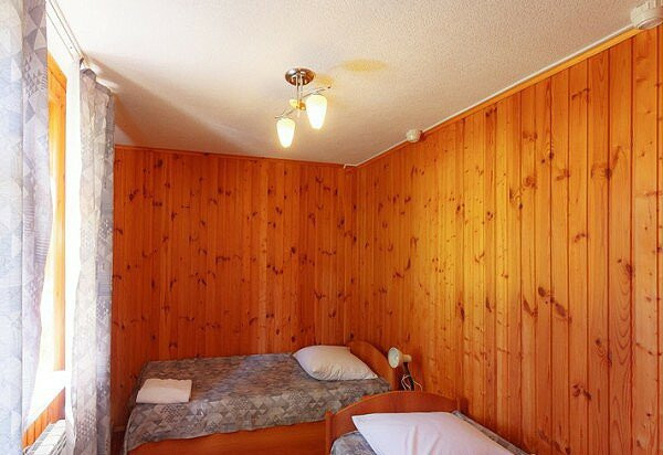 Корпус №2 (коттедж). Это одноэтажное деревянное отапливаемое строение с утепленными стенами и полом, в котором отдыхающие могут проживать круглогодично. Корпус состоит из трех 2-хкомнатных изолированных друг от друга номеров (№21,22,23) с отдельными входами. Номера 21 и 22 достаточно большие и могут вместить в себя от 2-х до 4-х человек (основное дополнительное место - диван-кровать). Номер 23 - небольшой и не предполагает размещение на дополнительном месте. Во всех номерах есть санузел с душевой кабиной, ТВ, холодильник и электрочайник с чайной парой.