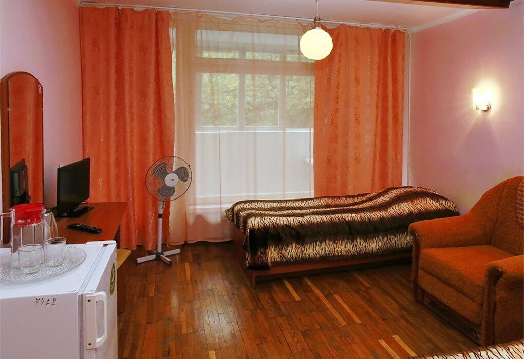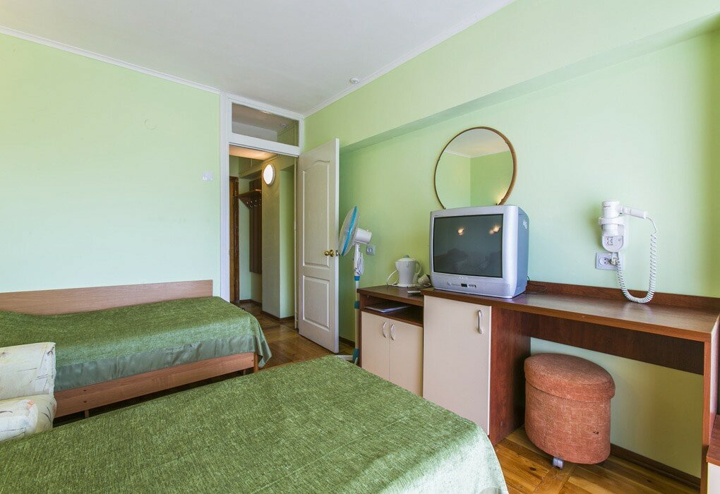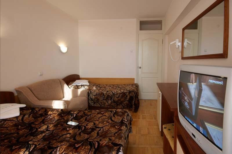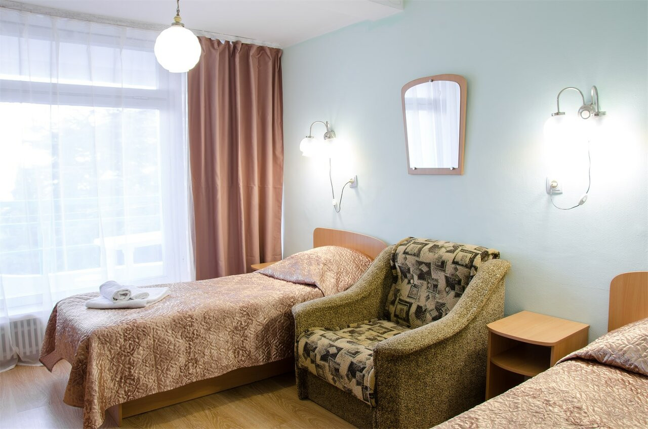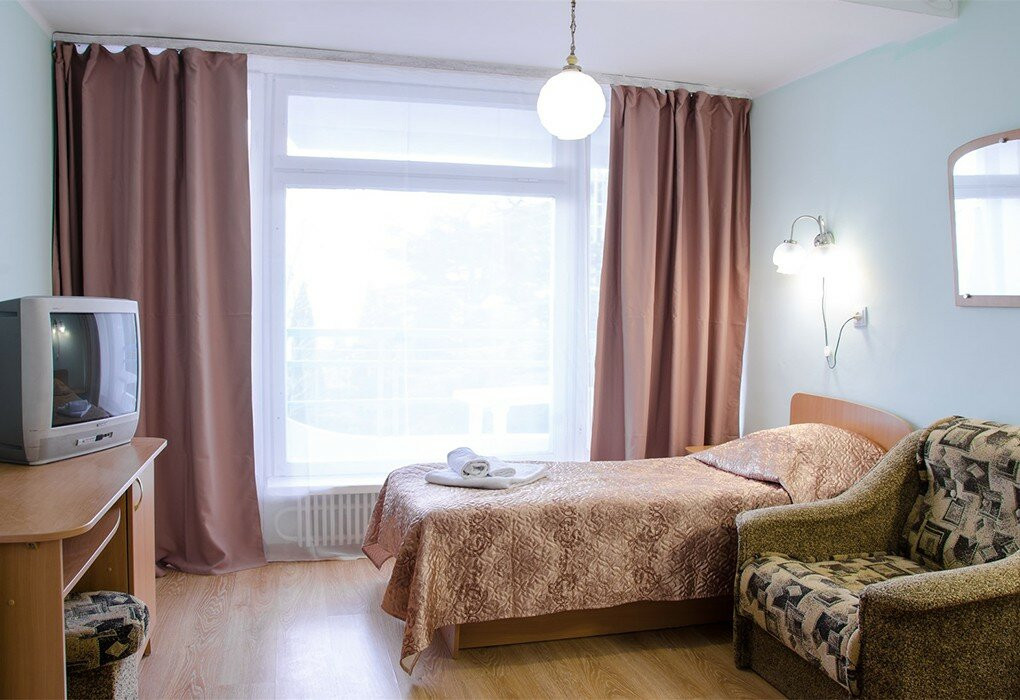 Обычный совдепоский санаторий, номера старенькие... Еда есть вкусная, а есть блюда очень странные. Кстати, там ужасный чай, знаете, когда кидаешь дофига пакетиков и варишь, пока пойло не получится. В общем, если вы не любитель такого, приносите на ужин с собой попить, ничего другого вам не предложат. Четверка за то, что находится максимально рядом с морем и огромным парком