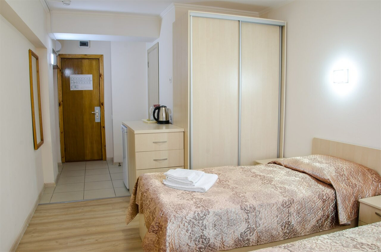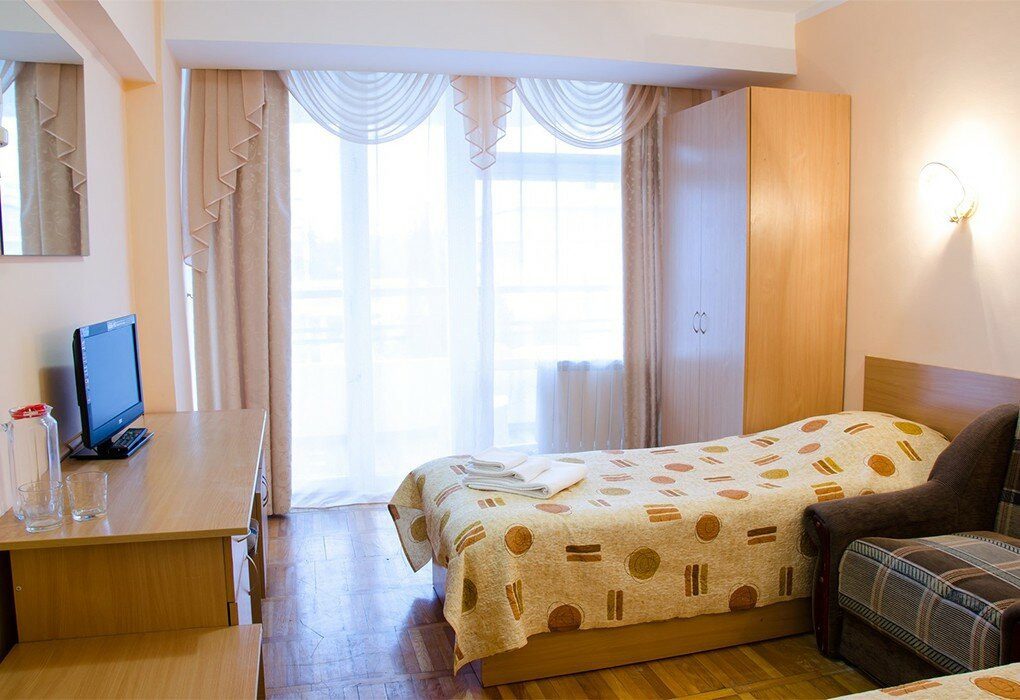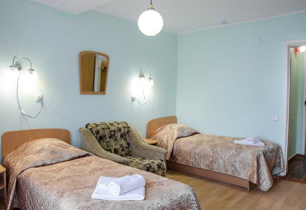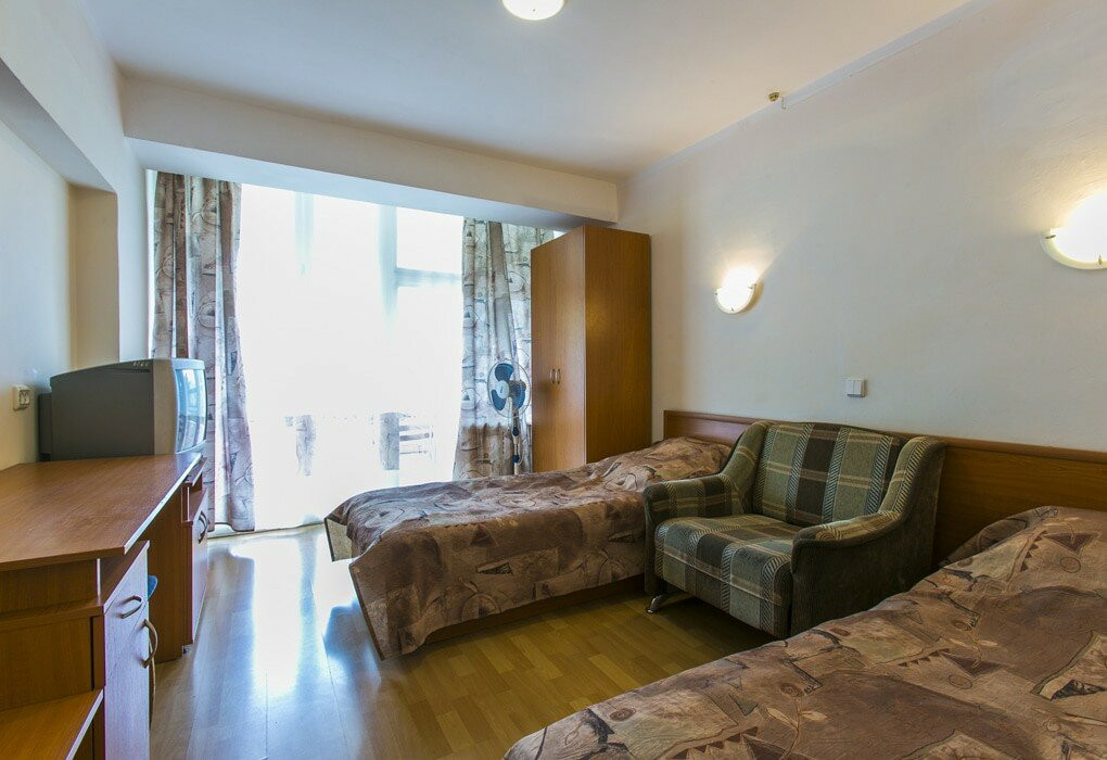 Обычный совдепоский санаторий, номера старенькие... Еда есть вкусная, а есть блюда очень странные. Кстати, там ужасный чай, знаете, когда кидаешь дофига пакетиков и варишь, пока пойло не получится. В общем, если вы не любитель такого, приносите на ужин с собой попить, ничего другого вам не предложат. Четверка за то, что находится максимально рядом с морем и огромным парком