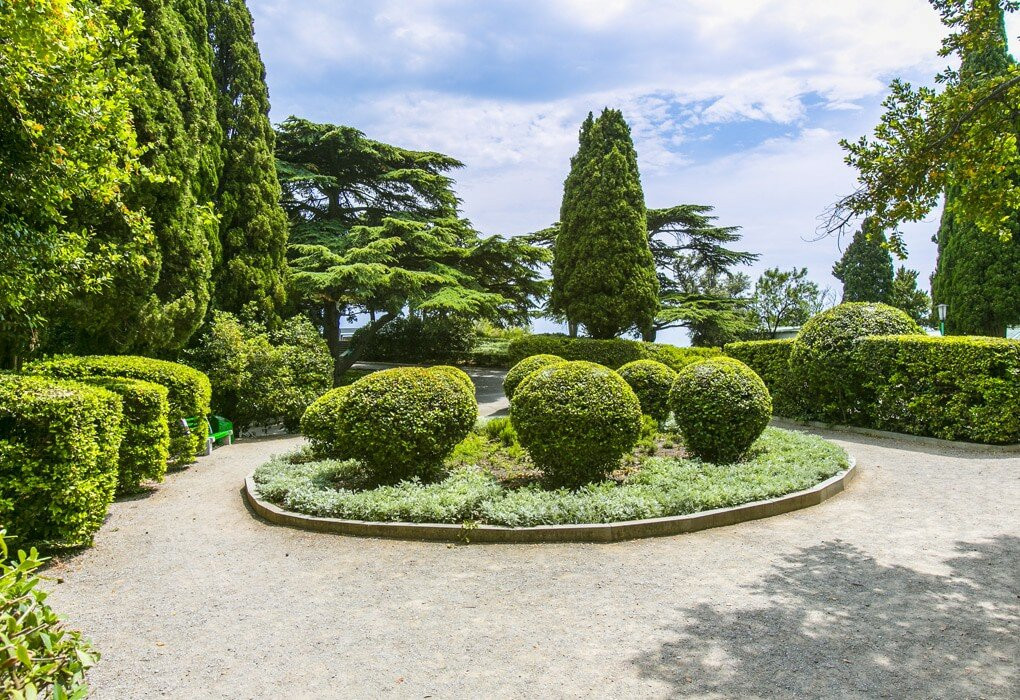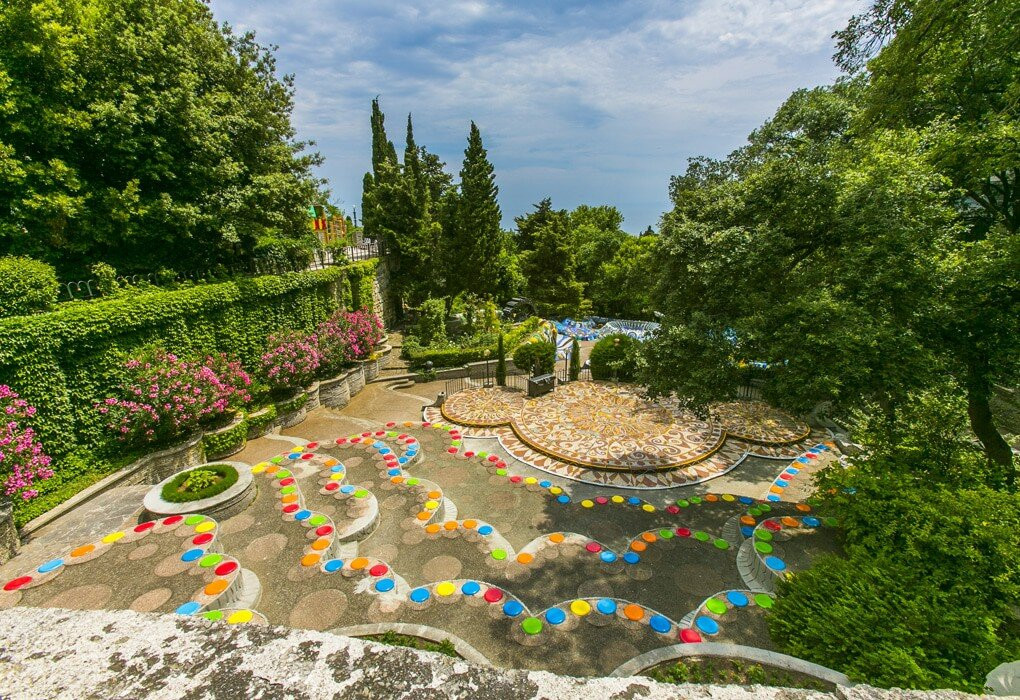 Большая территория, зелёная,много фантанов,но увы не один не работает, море чистое, хороший курортный городок,но немного заброшенный, рядом ласточкино гнездо, но оно на реставрации, в шаговой доступности Юсуповский дворец,который тоже на реставрации, спуск к морю по многочисленным лесенкам или в обход по кругу вдоль дороги
