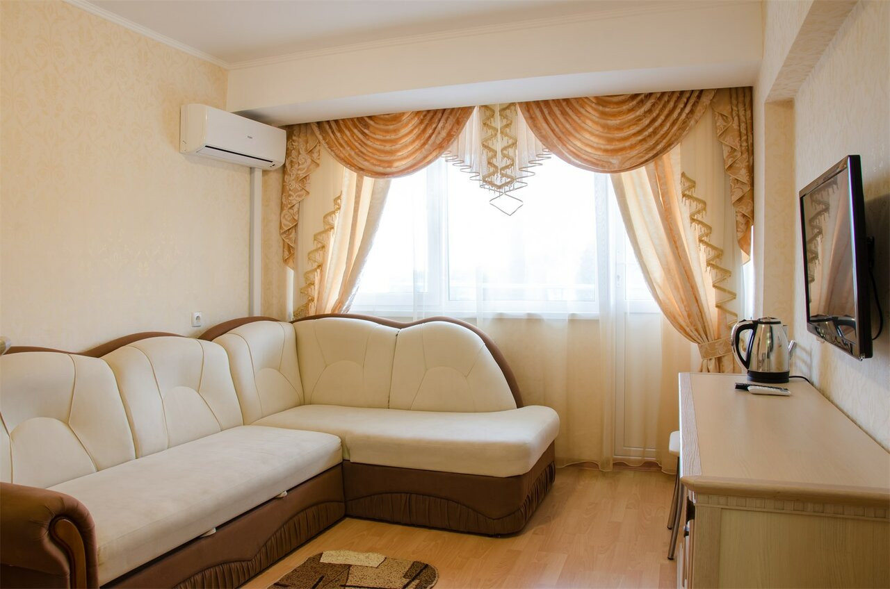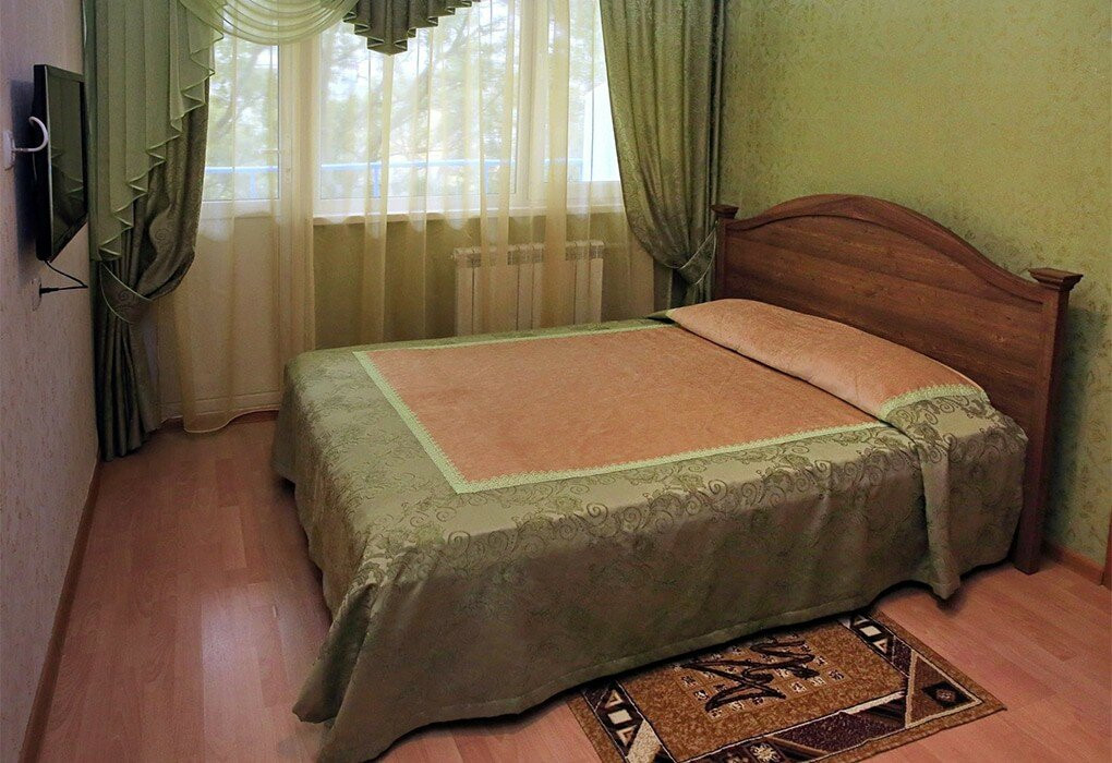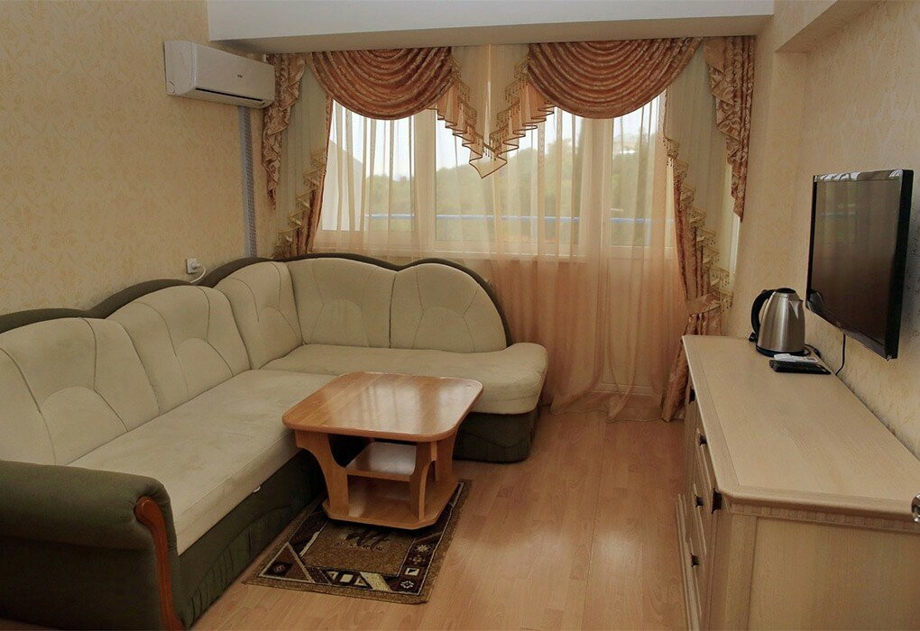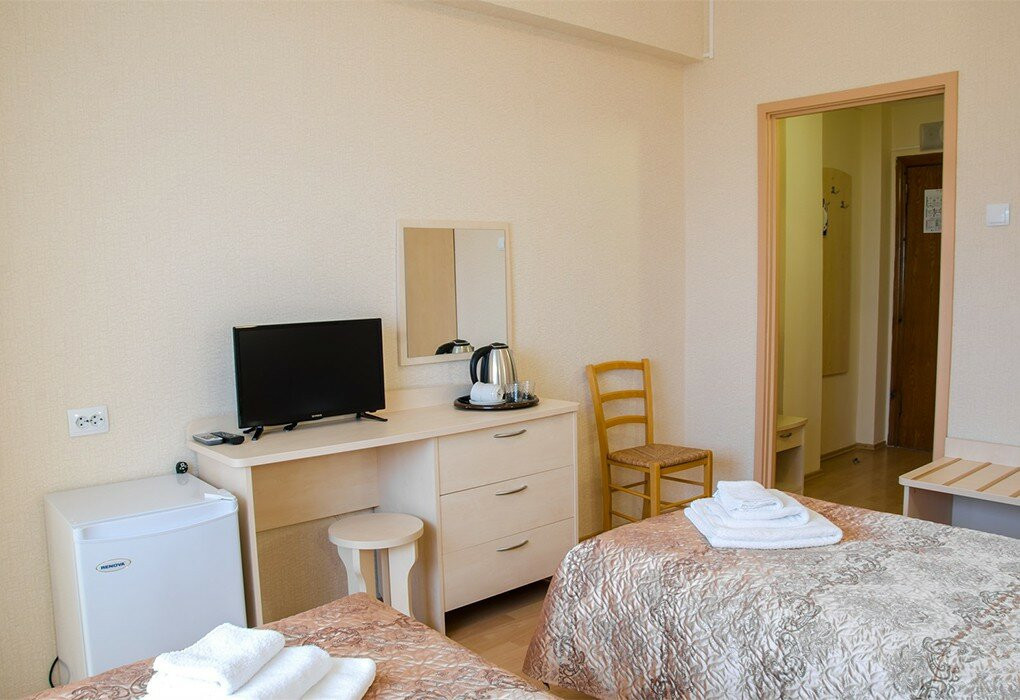 Отдыхали в конце августа-сентябрь 2020 года. Брали номер в 1 корпусе (всего 4), улучшенный, с ремонтом и кондиционером. В номере телевизор (плоский), холодильник (тарахтит), мебель новая, есть чайник, чашки, стаканы. По приезду два кусочка мыла и два пакетика шампуня. На балконе (в этом корпусе все номера с балконом) стол и два летних кресла. Путевка с оздоровлением. Входит только посещение бассейна и ароматерапия. Все остальное - за отдельные деньги. Если хотите подлечиться, целесообразнее купить путевку с лечением. Мы не знали, что оздоровление и лечение это разные вещи. В санатории везде ступени, а чемоданы вам до номера никто не понесет, Питание трехразовое. Хватало всем, голодными не останетесь. Ничего жареного, жирного. Из сладкого только выпечка. Всегда были паровые котлетки, салаты на выбор, каши, супы, гарниры. Всего в достатке. В обед компоты и отвар шиповника, часто кисель. Кофе только по утрам из кофемашин, с ними бывали проблемы. Это не сильная сторона столовой.