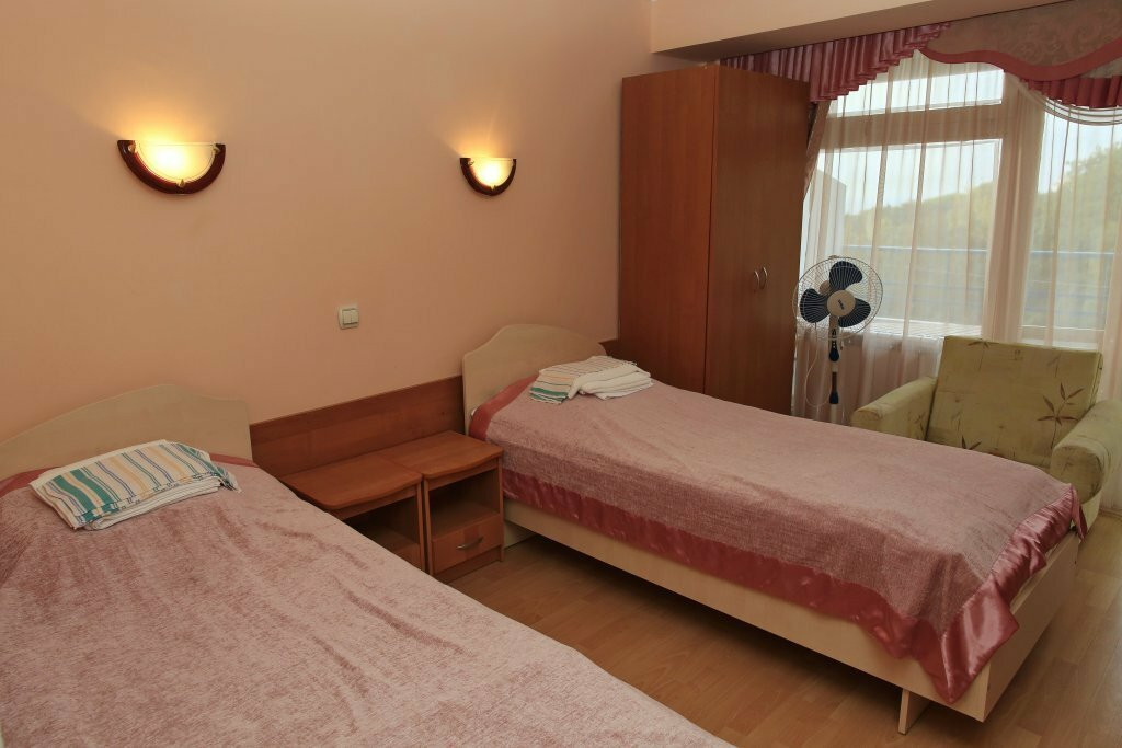 Из плюсов пожалуй можно отметить красивый парк, вид из номера на море, парковка. Из минусов, самое первое место отдаю холодильнику который работает как трактор радуя ночью своим мелодичным урчанием. Номерной фонд с ремонтом аля "и так сойдёт" облупленые исшарпарные полы советского времени. Экономия на освещении везде начиная от столовой и заканчивая тропинками и лесенками в парке где с лёгкостью вечером можно навернутся или во что-то вляпаться. Минусом также можно считать то что в 23:00 двери территории наглухо закрываются, а далее только через забор или в обход к центральному входу. Питание аля шведский стол, сытно бедно грустно, выбора особого нет блинчики можно прождать в очереди добрых 20 минут, фруктов салатов почти нет. Цена это отдельный разговор за такие деньги можно спокойно снять квартиру и кушать в кафе 2 раза в день ни в чем себе особо не отказывая и зная что вернутся можно хоть в 12 хоть в 2 ночи. Санаторий в целом навевает мысли о том, как было здорово в этих местах при Советском Союзе.