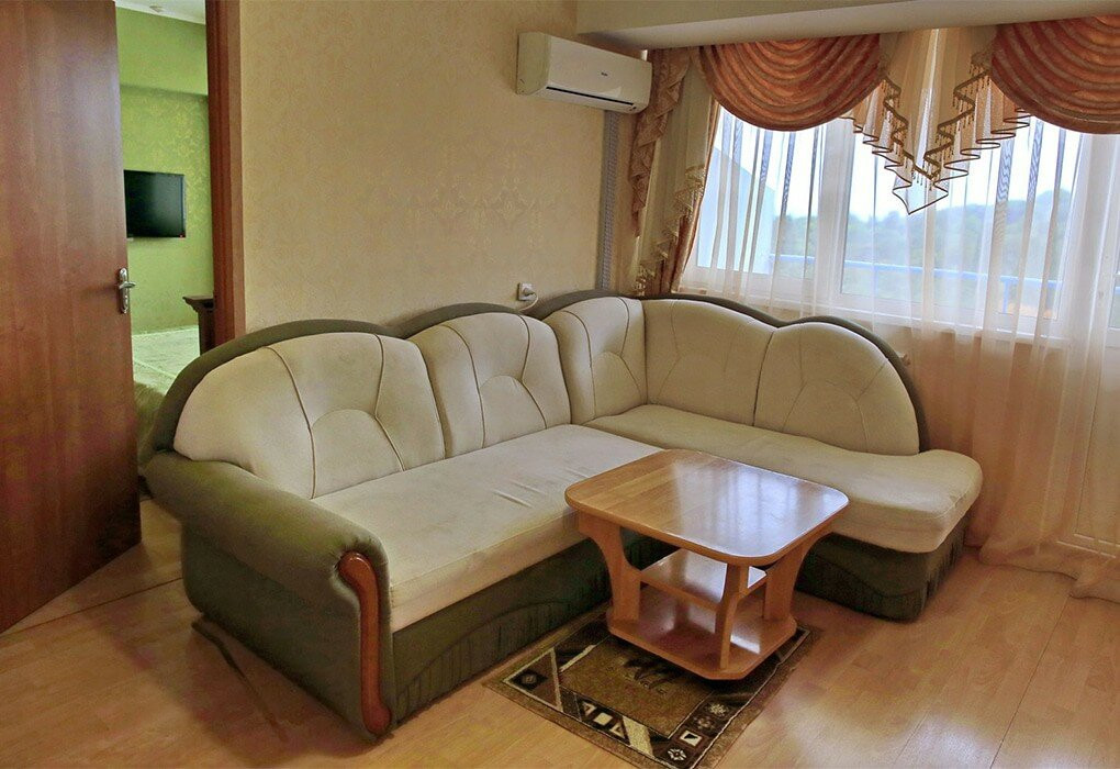Ужас ужасный. Совершенно не стоит своих денег. За 10к на троих в сутки в двухкомнатном номере комфорт без лечения мы получили два простейших советских номера с удобствами, с дверью, прорубленной в стене между ними. А ведь это первый корпус, как бы лучший у них! Единственное, кондиционеры действительно были. Мы просили переселить нас, нам не отказали, но так и НЕ ПЕРЕСЕЛИЛИ, тянули время, кормили обещаниями. В результате, мы провели двое суток на нераспакованных чемоданах и сбежали. Может быть, тем, кто приезжает почти бесплатно по путевкам не так обидно, но когда за деньги, реально не понимаешь, ЗА ЧТО!?!?! Добавлю, мы там познакомились с семьей, которая отдыхала по путёвкам от работы, они сказали, что так плохо их не отправляли лечиться ещё никогда. Фотографиям на сайте верить не стоит. Такие номера, может, и есть, но ни нам, ни друзьям, с которыми мы приехали, увидеть их не удалось. К отзыву прилагаю фотографии реальности, ориентируйтесь на такой уровень, большинство номеров такие. Вида из номера нет ни на парк, ни на море (см.фото). Территория ни о чем. Городской Мисхорский парк к санаторию отношения не имеет, да и состояние его в этой части оставляет желать лучшего - запущен (ближе к Воронцовскому гораздо чище и ухоженнее). На пляже санатория действительно есть своя бесплатная теневая зона и лежаки. Но это тоже ужас. Поверх старых сломанных, крашенных синей масленой краской лежаков, положили сбитые из досок настилы. Мест на лежаках не хватает - если вовремя не занял, будешь тусить на палящем солнце. Зато, места в этой теневой зоне продаются кому угодно. А потом отдыхающие санатория остаются не у дел. В день заезда так и получилось. Вокруг на набережной разруха и какие-то ржавые конструкции, закрытые частично зелёной строительной сеткой. К питанию, кстати, претензий не имею. Простая низкокалорийная пища совершенно не противоречит привычному для нас рациону. За два дня действительно из мяса видели только курицу (кто-то раньше в отзывах об этом писал), зато овощи и сырые и тушеные в наличии. Из фруктов были арбуз и дыня - к ним нужно успевать бегом, потом закончатся и больше не вынесут, а ещё мелкие, совершенно зелёные персики и сливы были. Про качество лечебной базы ничего сказать не могу, не были. Знаю только, что она находится на расстоянии примерно пары автобусных остановок от санатория Мисхор, так что рассчитывайте свои силы и желание добираться туда по жаре. Про ресепшн: ребята, выученные, вежливые, но работа их организована очень слабо. В 12.00, когда начинают прибывать отдыхающие, у ребят начинается обед, на ресепшн остаётся один сотрудник, который не справляется. При мне больше 20 человек ждали больше 40 минут, пока ими займутся (я все пыталась решить вопрос с переселением, писала об этом выше). Справки о контактах с covid у нас никто даже не спросил, температуру не мерили ни разу. Ох, ну и не могу не сказать пару слов об анимации: концерт талантов, по сути, караоке, проводится на площадке на улице возле столовой, слышно по всему побережью, никуда от него не деться. Пенсионеры орут в микрофон песни 40ка летней давности. Если удастся прикрепить видео, порадую вас этим шедевром ))) Были там в последних числах июля 2020. Полнейшее разочарование