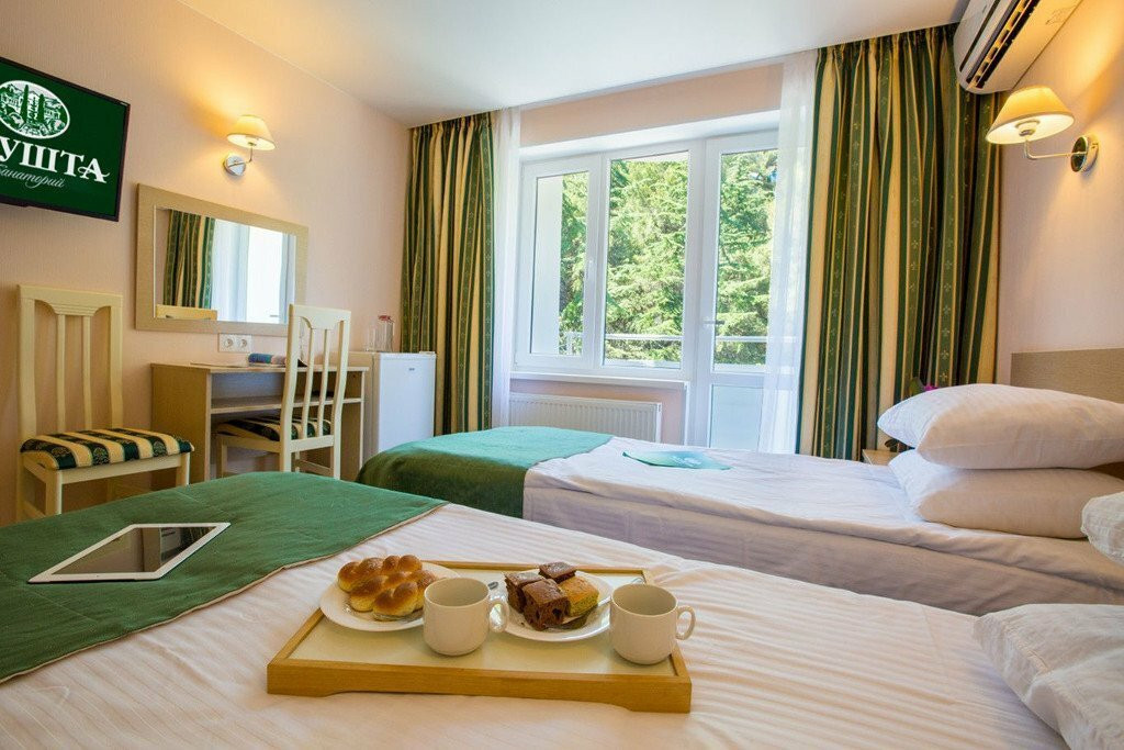 В целом хорошее впечатление. Номера чистые, уютные, 3х разовое питание. Минусы: в номере нет одноразовых тапочек и халата, очень слабый вай фай. Но мы приехали на море, а не в номере сидеть..