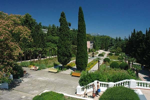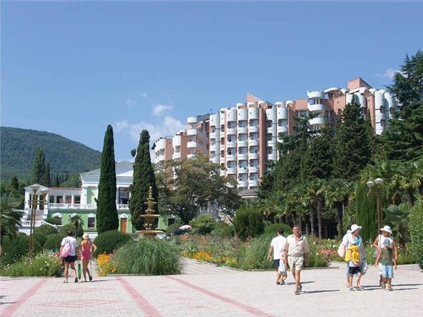 Заканчивается отдых в этом санатории. В Крым приехали только потому, что отдых за границей в июле был невозможен. По отзывам выбрали этот санаторий, к сожалению они далеки от реальности, особенно что касается расстояния до моря и питания. Первое впечатление было ужасное, сразу связались с туроператором, чтобы нас переселили в другой санаторий, но оказалось, что мест свободных нет, только за доплату. В итоге Крым у нас получился по цене Тайланда. Кроме большой и красивой территории хорошего ничего нет. Сразу скажу, что это не первая линия, как пишут в отзывах. До моря 150 метров от центрального входа, плюс около 500 метров до пляжа санатория. Между санаторием и морем ещё есть турбаза и отели. По факту от нашего корпуса(первый) до моря выходило метров 700, в том числе 100 ступенек (не поленились посчитать), пятый корпус ещё дальше нашего. Ближе всего к морю 6,7и 8 корпуса, но там стоимость путёвки на двоих взрослых выходила около 140000р. На пляже лежаков хватало, даже не смотря на то, что их продают по 150р на день сторонним отдыхающим. Питание в столовой однообразное, меню ещё наверно с советских времен осталось. Если приходить к началу завтрака, обеда или ужина, то есть шанс что-то выбрать, опять же если успеете занять стол. Если прийти через час после начала, то будете есть, что осталось. Сейчас столовая не справляется с полной загруженностью санатория, вилок не хватает, приходится тоже ждать. Номера в первом корпусе маленькие 11 метров, мебель старая, нет балкона, в санузле нет фена, даже розетки, убираются 1 раз в 5 дней, полотенца меняли 1 раз в три дня, если попросить. Чайника в номере тоже нет, кулер только на первом этаже. Туалетные принадлежности кладут только при заезде 2 шампуня, 2 геля и 1 мыло, далее покупали сами, только бумагу туалетную не пришлось покупать. Про лечение, как оказалось в стоимость путёвки входит только 3 массажа воротниковой зоны по 10 минут, 6 процедур физиотерапии, 8 фиточая, лфк , аквааэробика, один приём терапевта и специалиста. Получилось, что стоимость лечения по путевке составила: приём врача 400р, 900р массаж, 1600 магнитотерапия, чай 640. Все остальное (водолечебница, соляная пещера, массаж) за дополнительные деньги. Никому не порекомендую этот санаторий. Жалко смотреть как бабушки и дедушки, дети карабкаются по этим ступенькам. Про персонал, создаётся такое впечатление, что они очень устали от гостей, хотя сезон только начался с 1 июля. Вероятно здесь и не было никогда полной заполняемости.