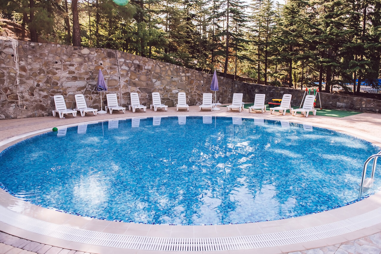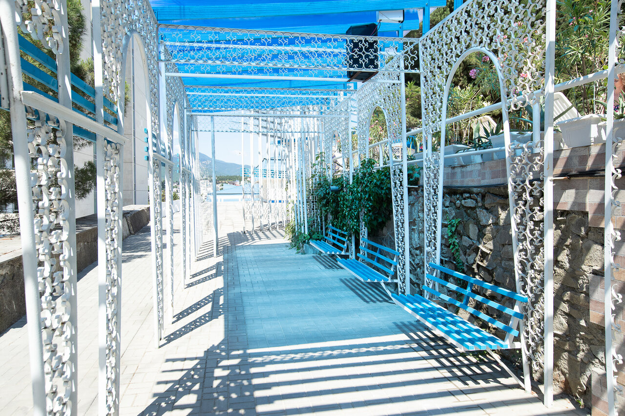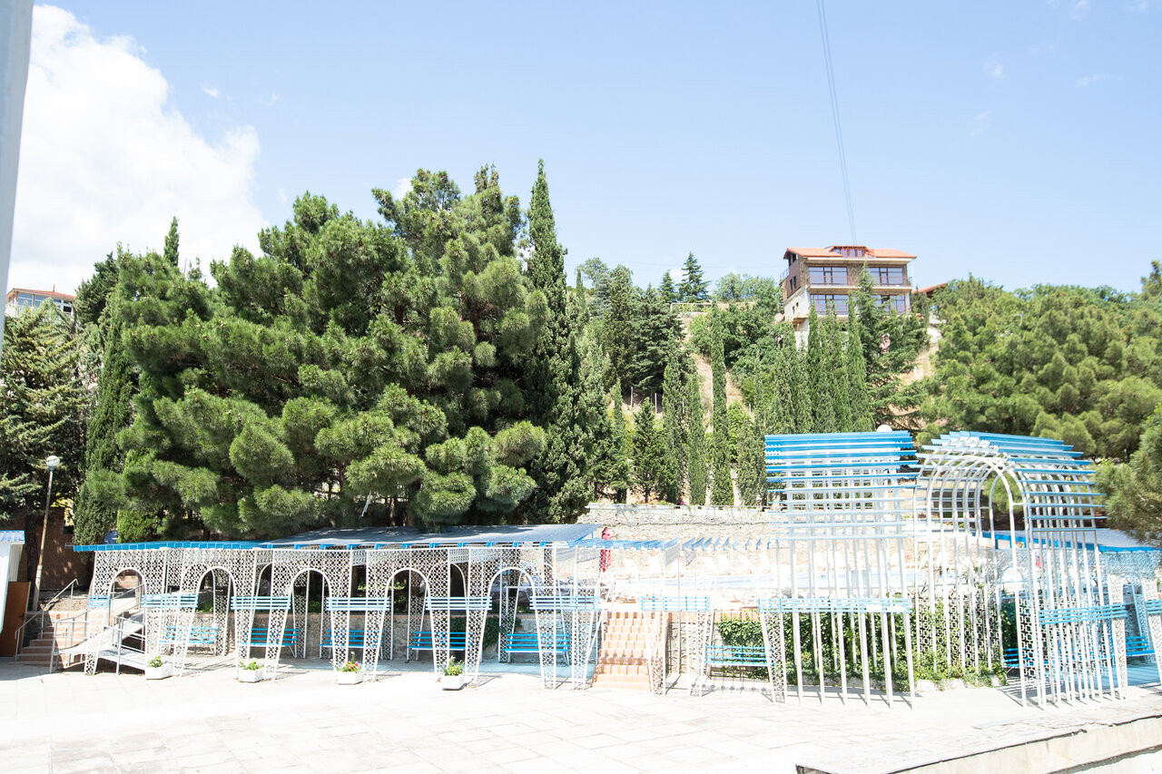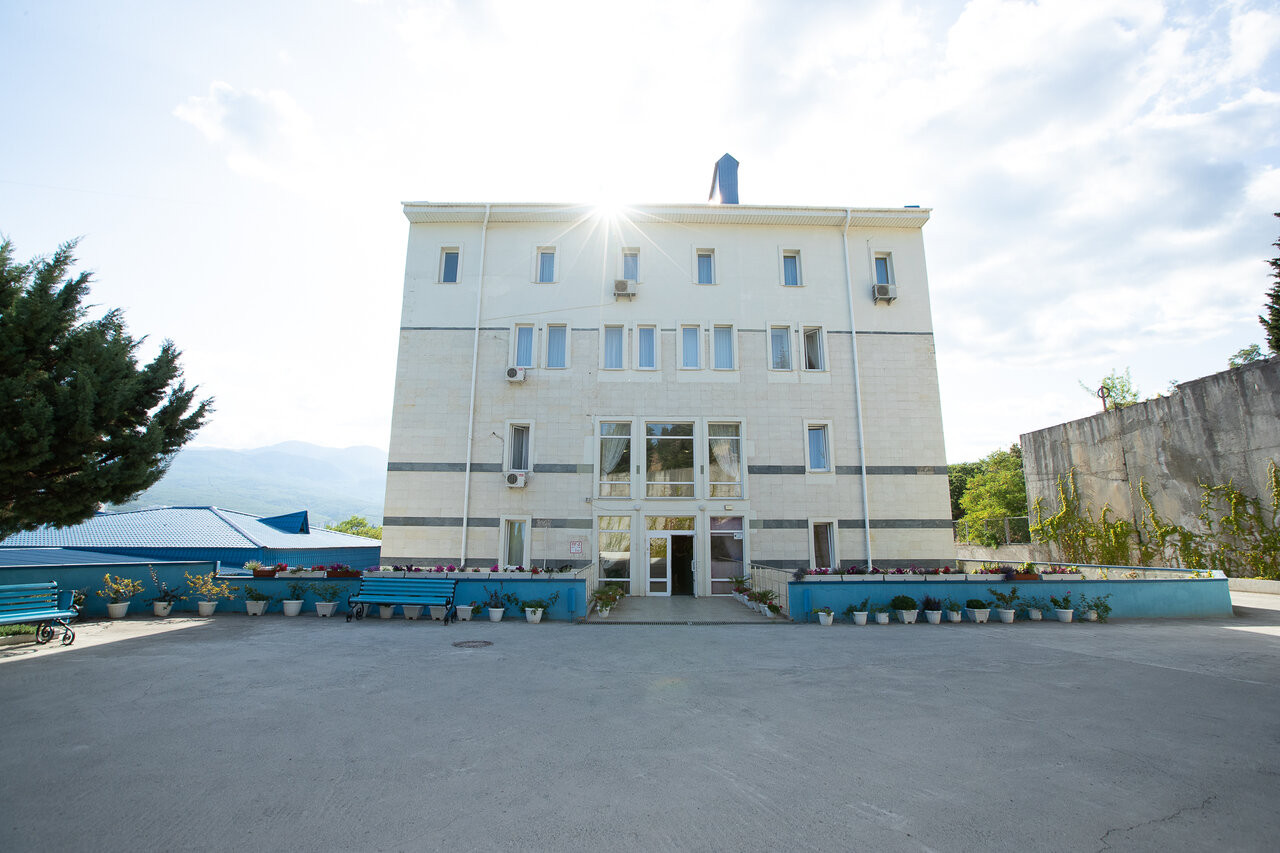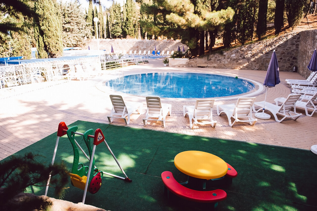 Для нормальной жизни по социальной путевке (1 корпус рядом с лечебным) нужно доплачивать. Есть хороший крытый бассейн с видом на море и горы. Еда вполне вкусная но порции небольшие. До моря по туннелю 6 минут. Корпуса на горке! С больными ногами будут проблемы! И в бассейне минимум глубина 1,6м и высокая ступень лесенки!