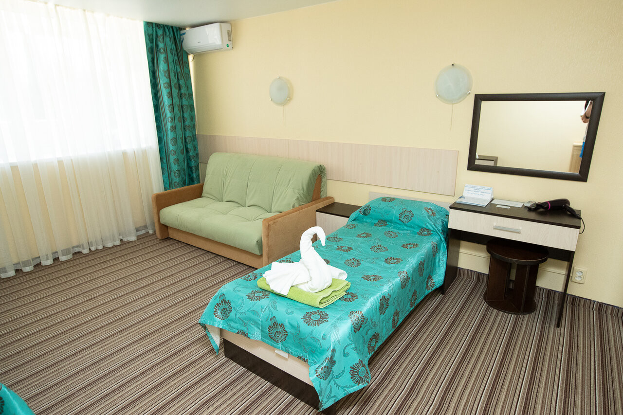 Что может быть лучше отдыха на море, в санатории с бесплатным лечением и питанием, и с погодой повезло, несмотря на 3 декаду октября. Номера стандартные, убираются регулярно, полотенца меняются по первой просьбе. Питание в нашем корпусе было шведский стол, пусть не очень большой выбор, зато все сьедобное, вкусное, особенно супы и каши, большое разнобразие салатов, всегда присутствовал творог, пусть и не в большом количестве. Поэтому ставлю 5 .