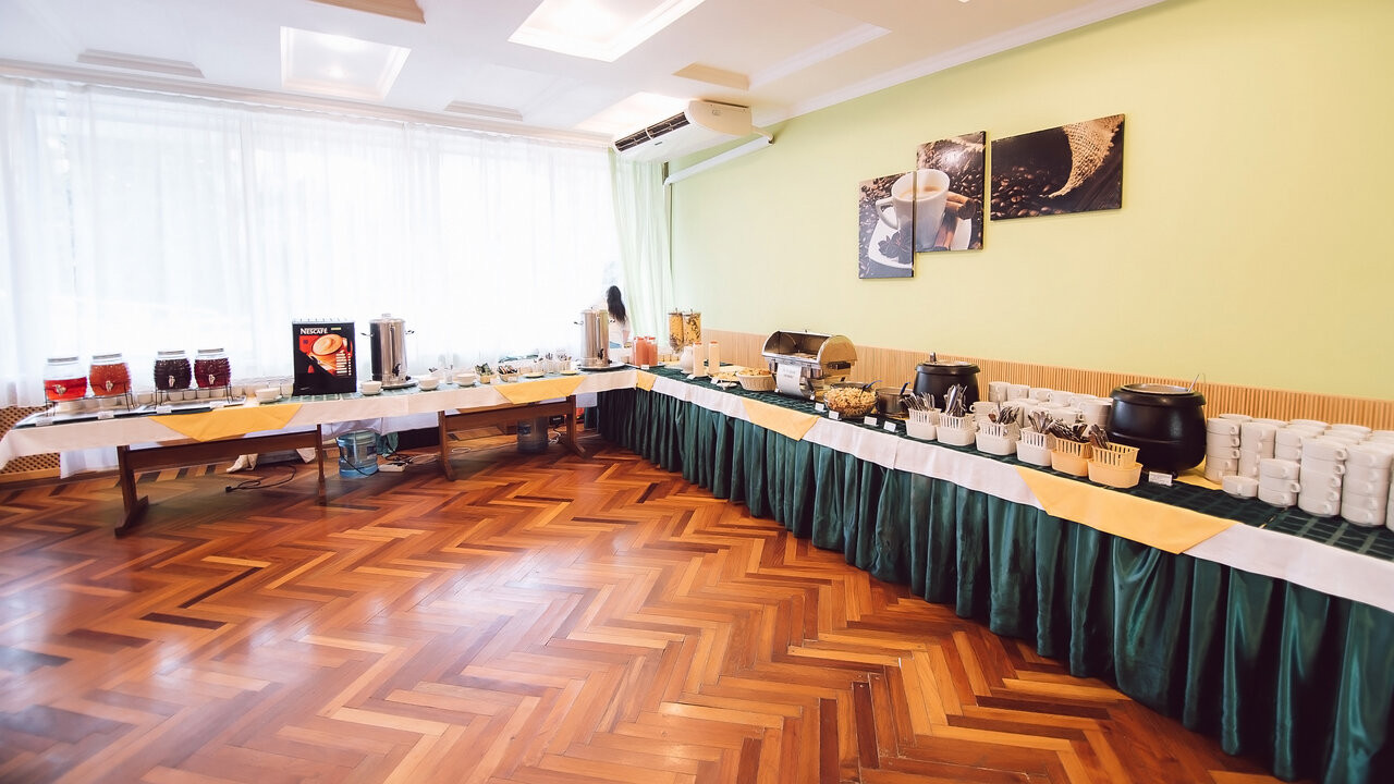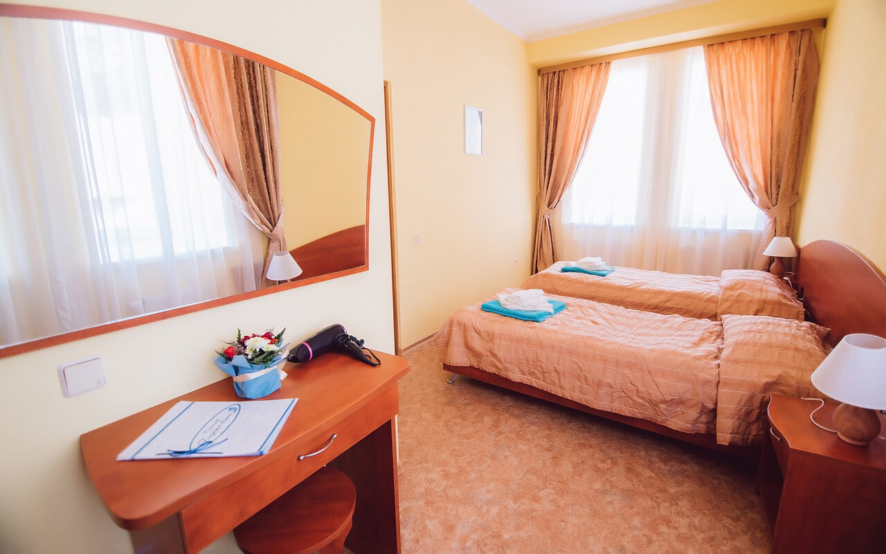 Начнём с заезда: 2 часа ждал своей очереди на заселение, ладно я - молодой, но пожилые люди с дороги вынуждены стоять в нескольких очередях. По путёвке должны быть 2х местные номера, бесплатное размещение только в 3х местных, остальные - за приличную доплату. От 500 рублей за сутки. В качестве компенсации за 3х местные номера в подарок дают "шведский стол"... Жуткие очереди в столовой, некоторые продукты с ограничением, если вообще тебе достанутся... Процедуры назначены по времени так, что приходится выбирать либо голодный и здоровый, либо сытый и больной... Если пропустил 1 посещение процедуры и не предупредил - процедуру вообще отменяют и возобновить не возможно... 2 звезды исключительно за бассейн.
