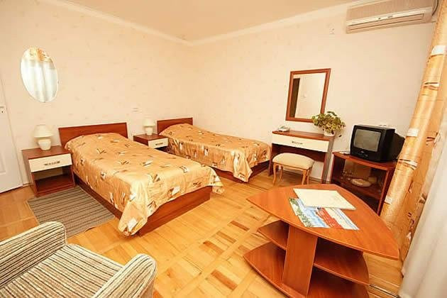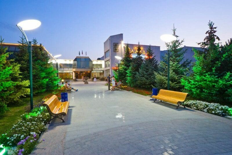 Отличный санаторий .Есть большой бассейн 50м×32м и глубиной 1.60.своя территория на пляже.банкомат рядом.магазин аптека.рынок небольшой