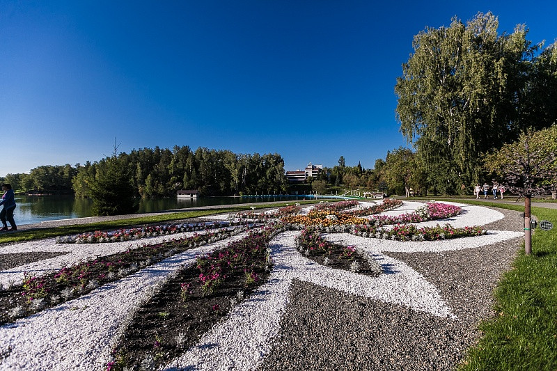 Большой огороженный парк общей площадью 12,75 га, есть возможность пеших и лыжных прогулок по хорошо освещённой территории.