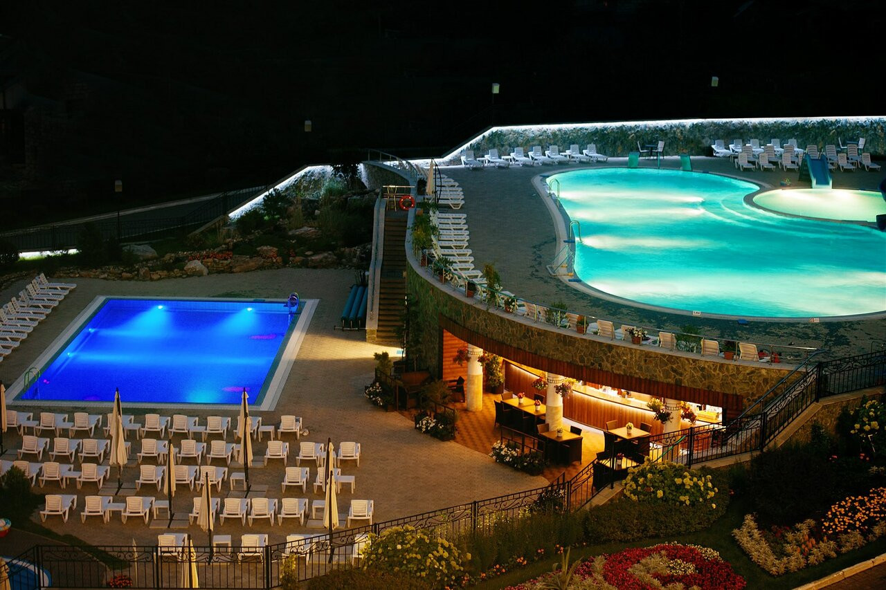 все супер! хорошая еда,привили выйти персонал. хорошая поликлиника много оздоровительных процедур . есть небольшой бассейн с турецкой и рукой парной. бесплатная стоянка . есть вечерняя анимация. единственный минус высокая цена.