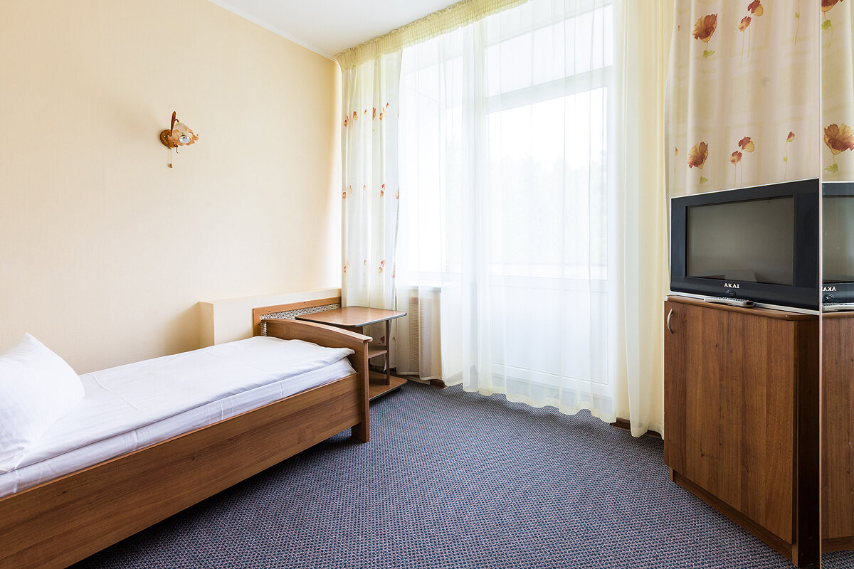 В целом неплохо, но очень удивило что в санатории, где почти все процедуры связаны с водой и грязелечением в номере нет фена.(Одноместный номер) А ещё почти час сидела перед администратором и ждала время заселения, в 13-55 мне просто достали ключ от номера из ящичка и отдали мне, из чего я заключила что он был свободен и готов к заселению. Но....