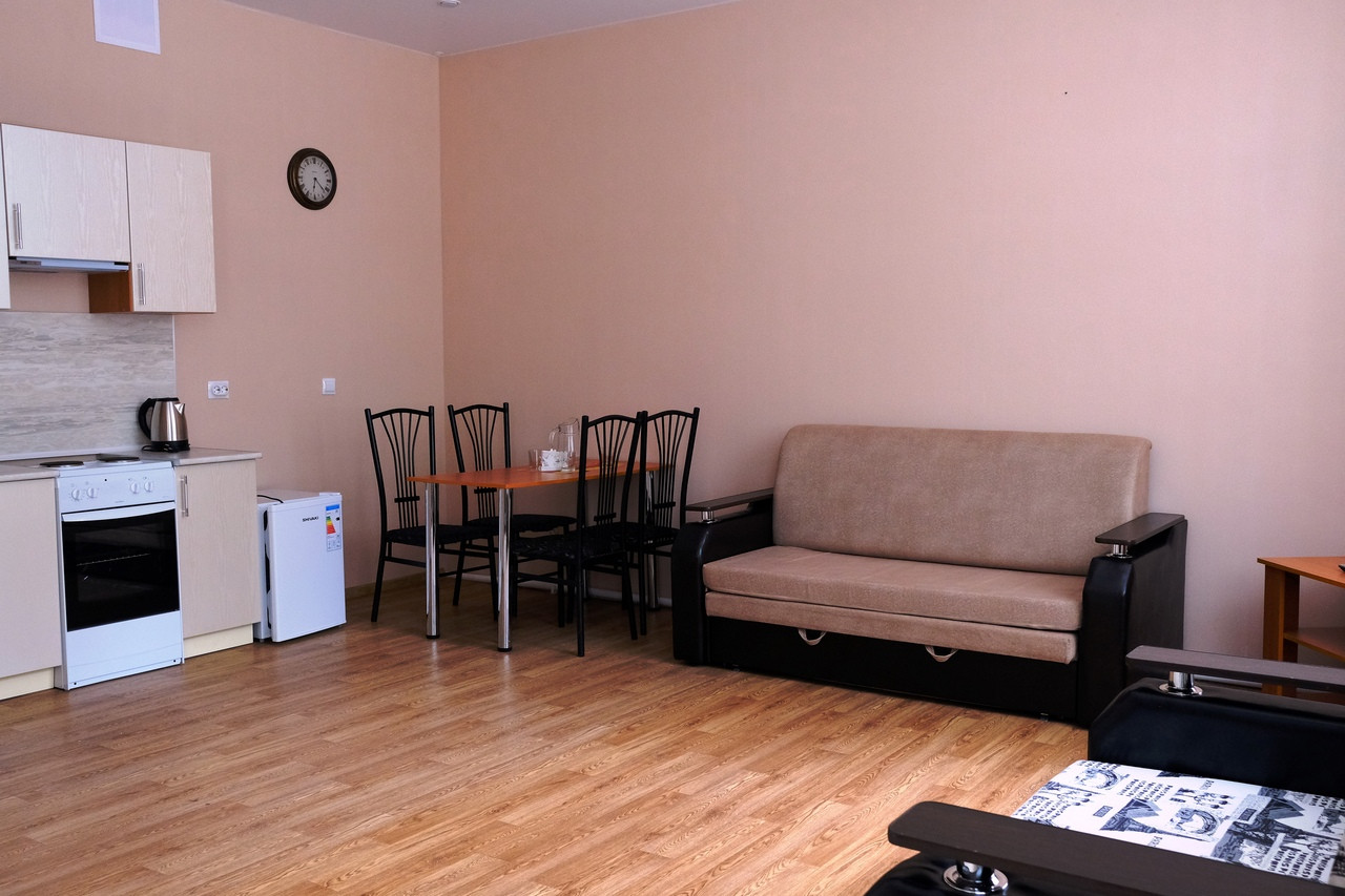Это один из самых крупных санаториев, способных разместить до 650 человек. Комплекс здравницы включает в себя три 5-этажных корпуса, два из которых (№1 и №2) соединены теплыми переходами между собой и с лечебным комплексом, один двух-этажный с номерами-студиями. Жилые корпуса оборудованы лифтами, в том числе и для людей с ограниченными возможностями.