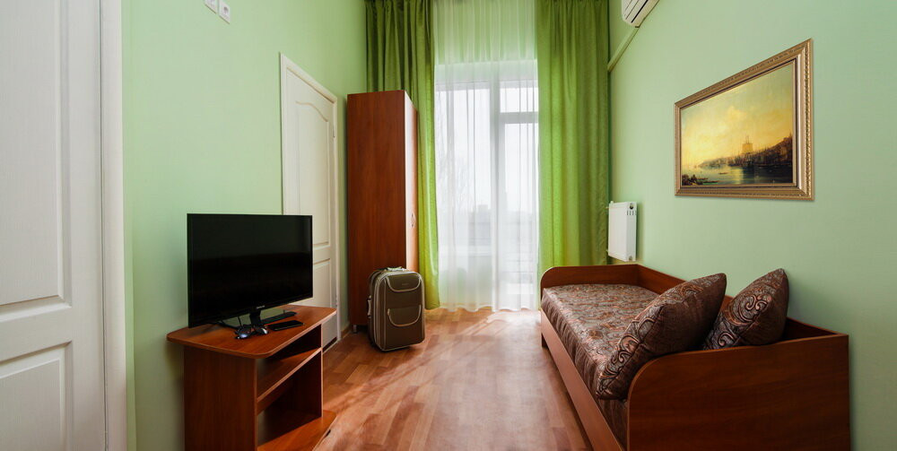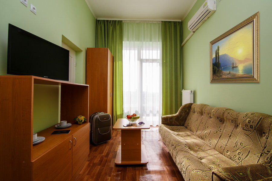 Санаторий «Таврия» находится в солнечном городе Евпатория. Номерной фонд расположен в корпусах, которые соединены переходами. Здравница работает круглогодично, поэтому постояльцы могут удобно передвигаться из одного здания в другое. Туристы могут проживать в улучшенных, полулюксовых и комфортных апартаментах различных типов. Все они превосходно укомплектованы бытовой техникой и мебелью. Санузлы оснащены душевыми, полотенцами и парфюмерией.