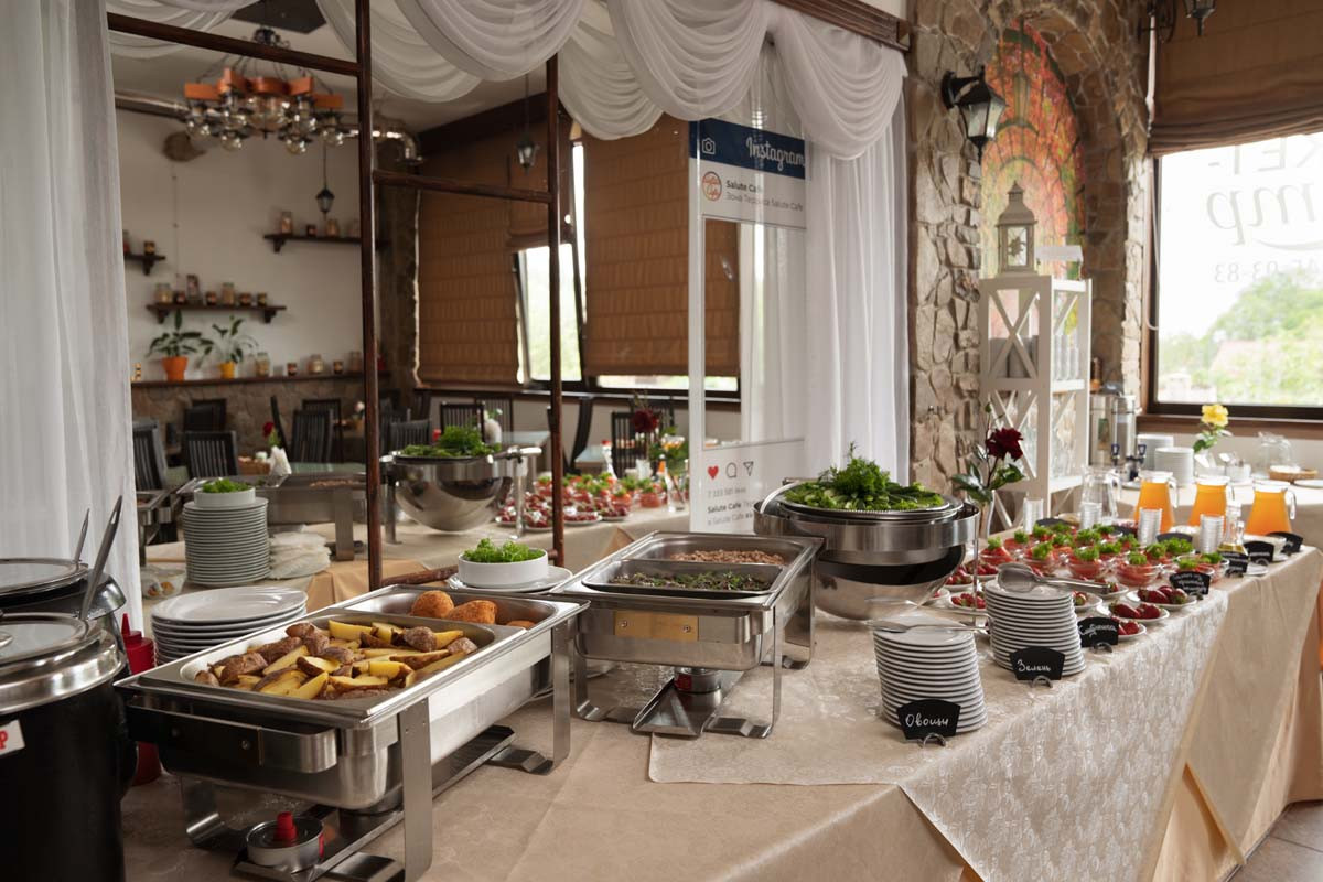 Питание: На территории пансионата открылось новое Salute-cafe, где Вашему вниманию предлагается комплексное питание (с предварительным выбором) или заказное меню с европейской кухней (Италия, Греция пр.), а также по многочисленным просьбам гостей было разработано специальное детское меню (с подачей в детской посуде.). Уютный интерьер, музыка, украшения на столах, приветливые официанты.