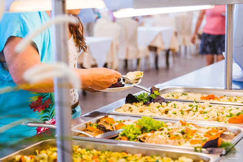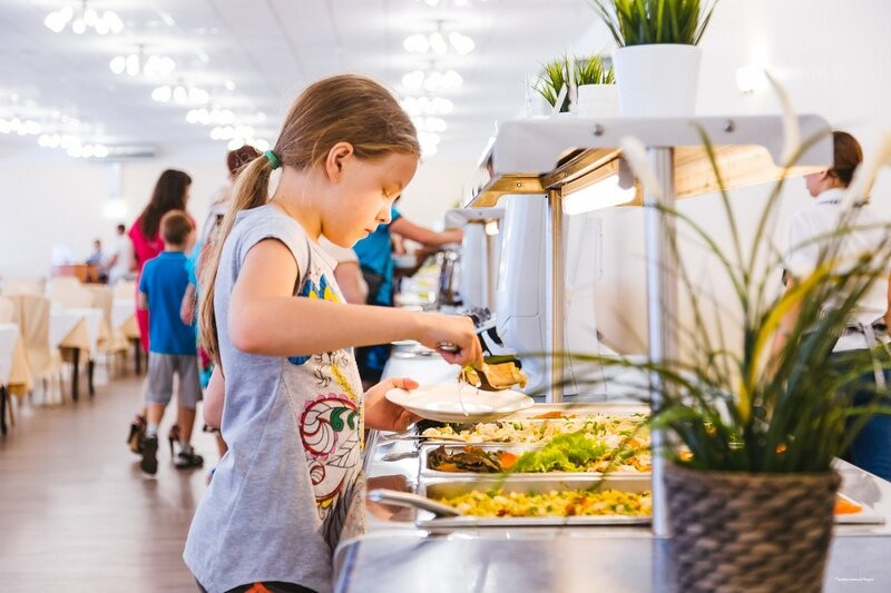 Меню обычное - мясо рыба, но разнообразное. На мой вкус немного пересолено, а каши на завтрак слишком сладкие. 5ти разовое питание - 3 полноценных, чай/кофе с пирожками полдник и кефир перед сном. Дочка кушала очень плохо тут. Много жирного. Просила варить кашу для дочки без сахара и соли. Все равно не ела.