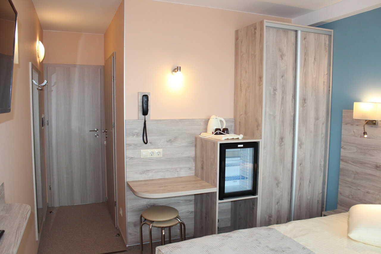 Размещение происходит в двух спальных корпусах: 3-х этажный и 5-ти этажный корпус (с лифтом).