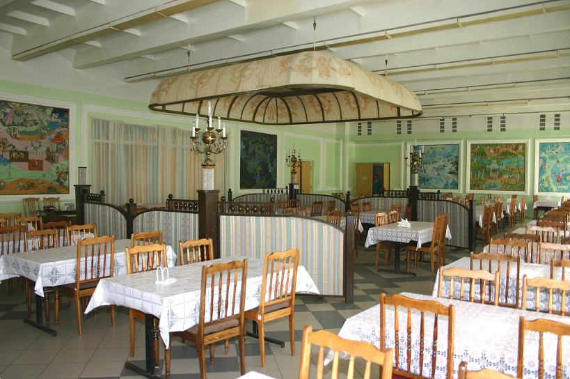 Питание в санатории прекрасно сбалансированное, диетическое и вместе с тем очень разнообразное. Режим питания - три раза в день.