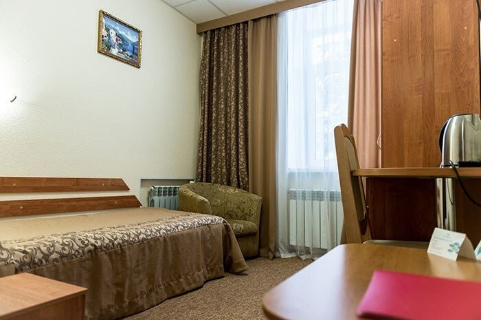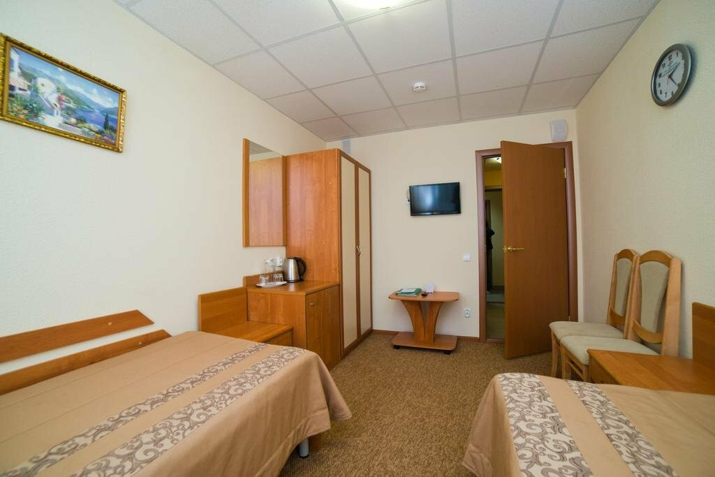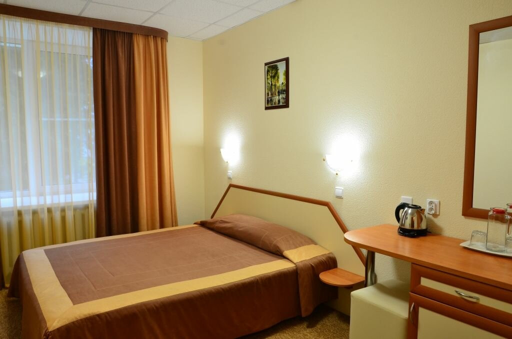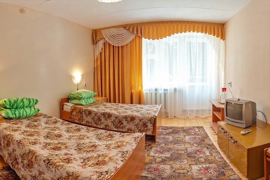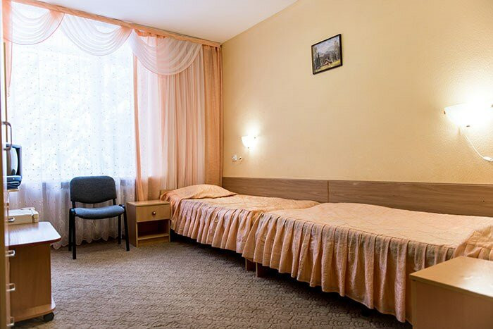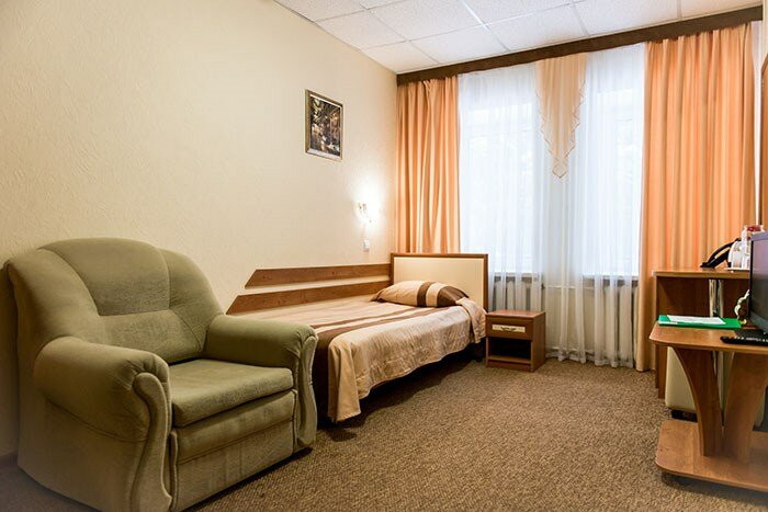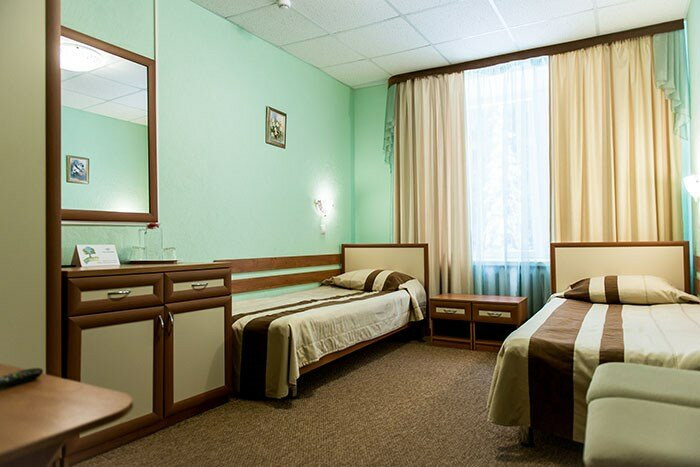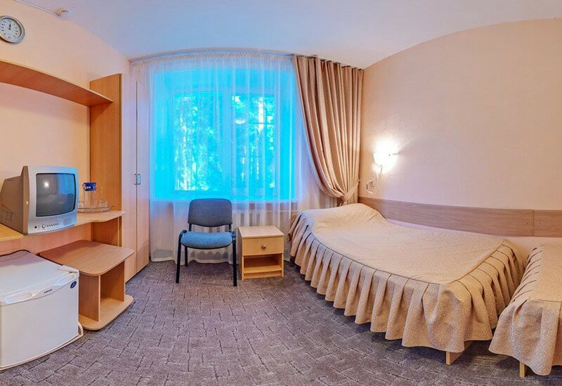 Во всех номерах санатория установлен шкаф. На территории курортного отеля работает ресторан. В каждом номере санатория «Сосновый бор» установлен письменный стол и телевизор.