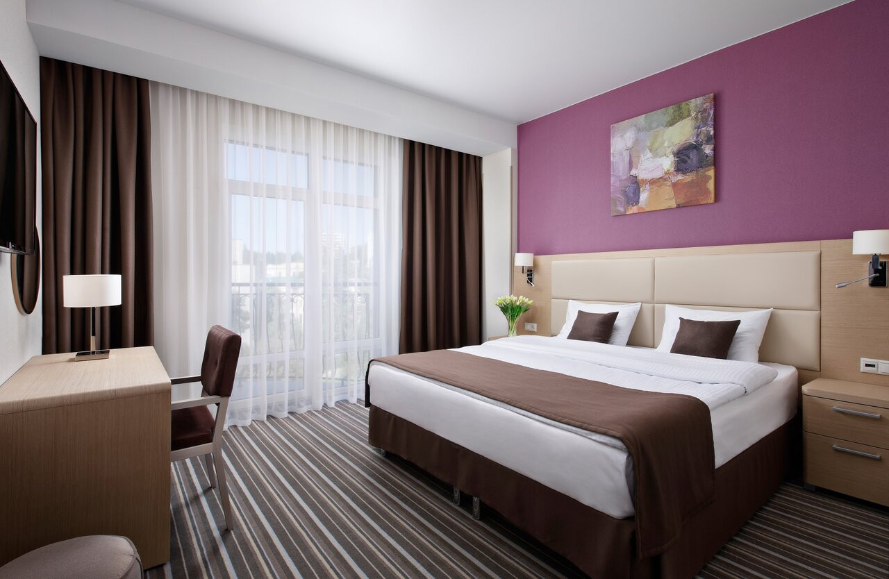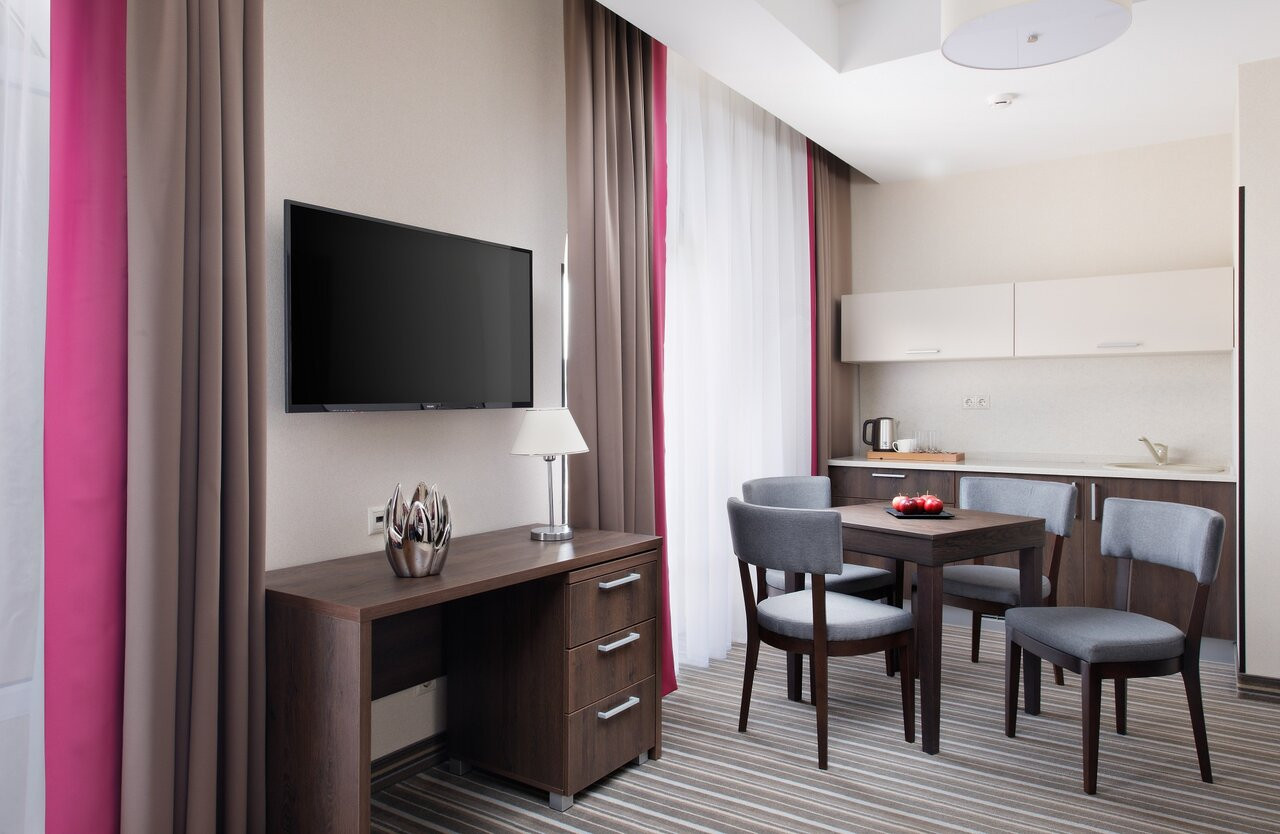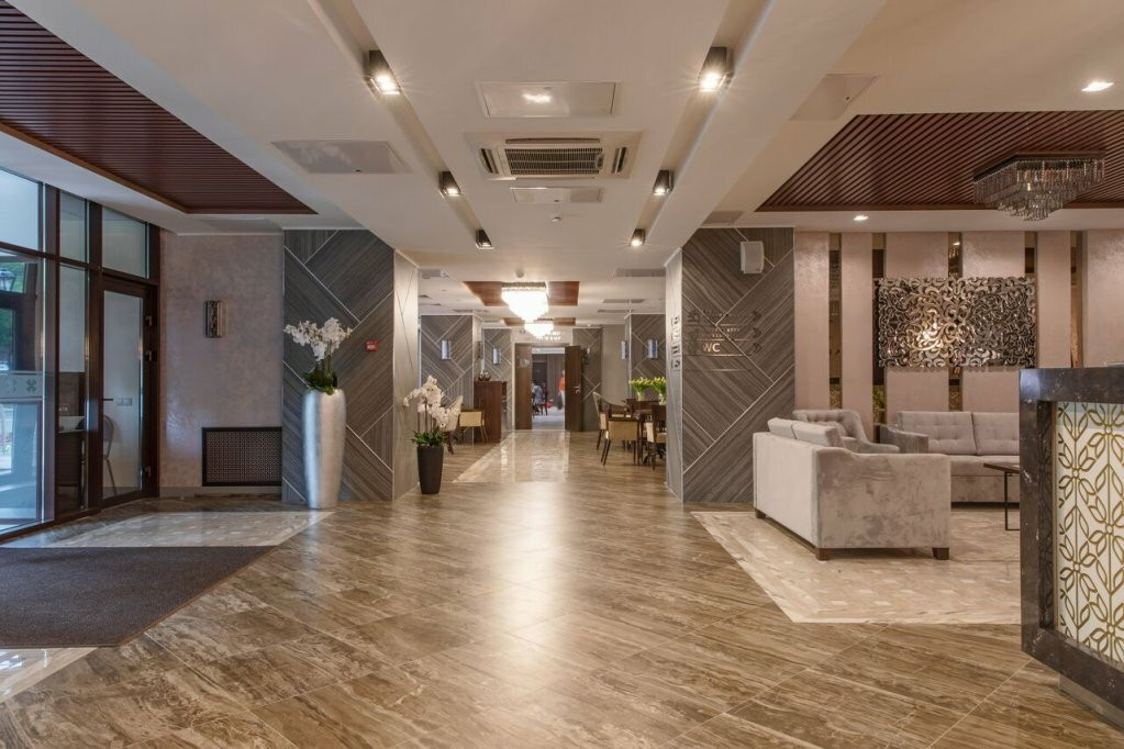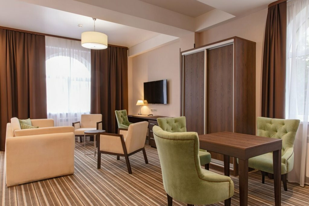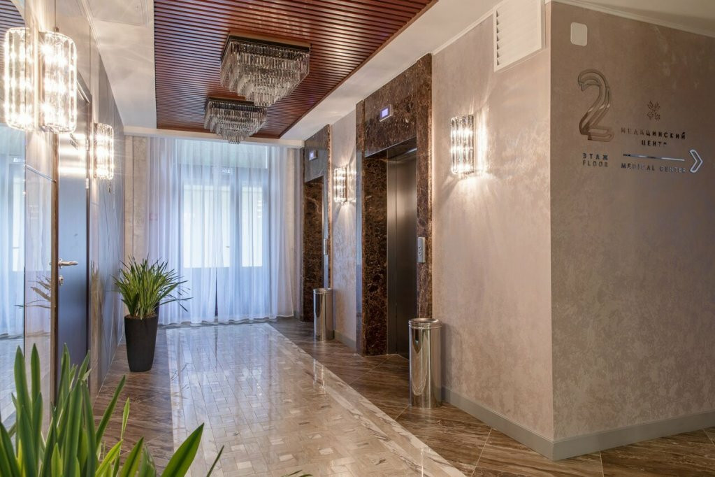 Новое девятиэтажное здание курортного санатория рассчитано всего на 160 постояльцев, и каждый гость окружён заботой и вниманием. При заселении клиентам предлагается выбор из 79 комфортных номеров — от компактных до просторных, оборудованных мини-кухней.