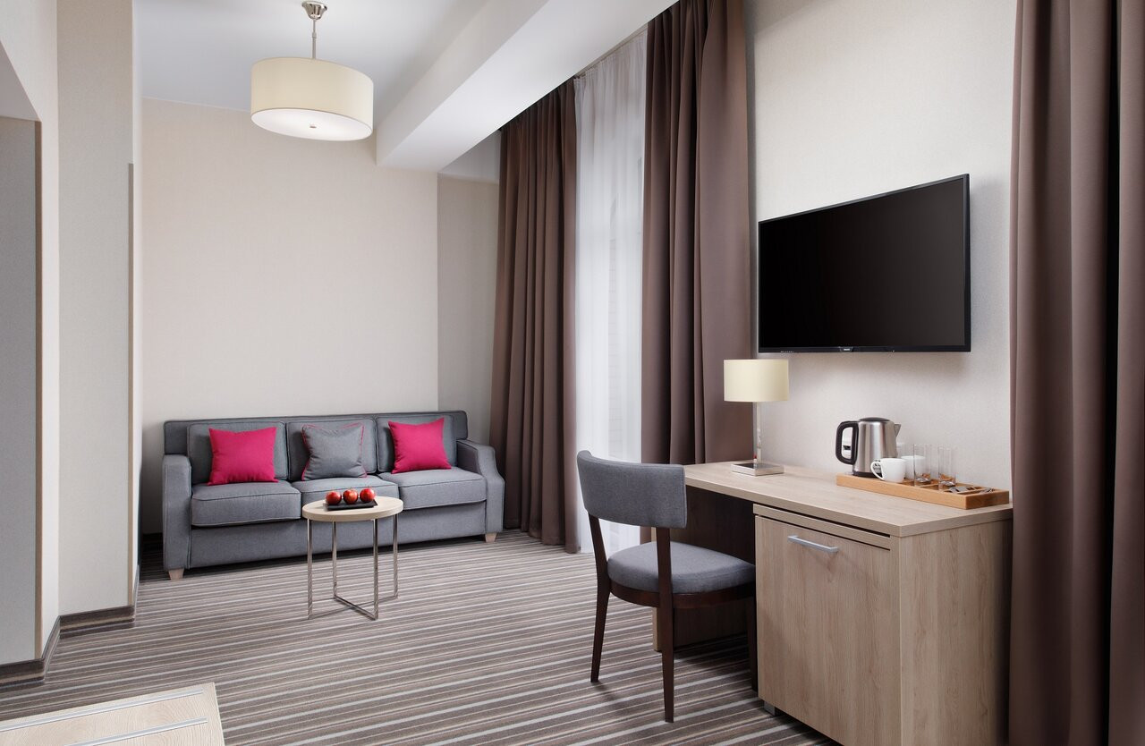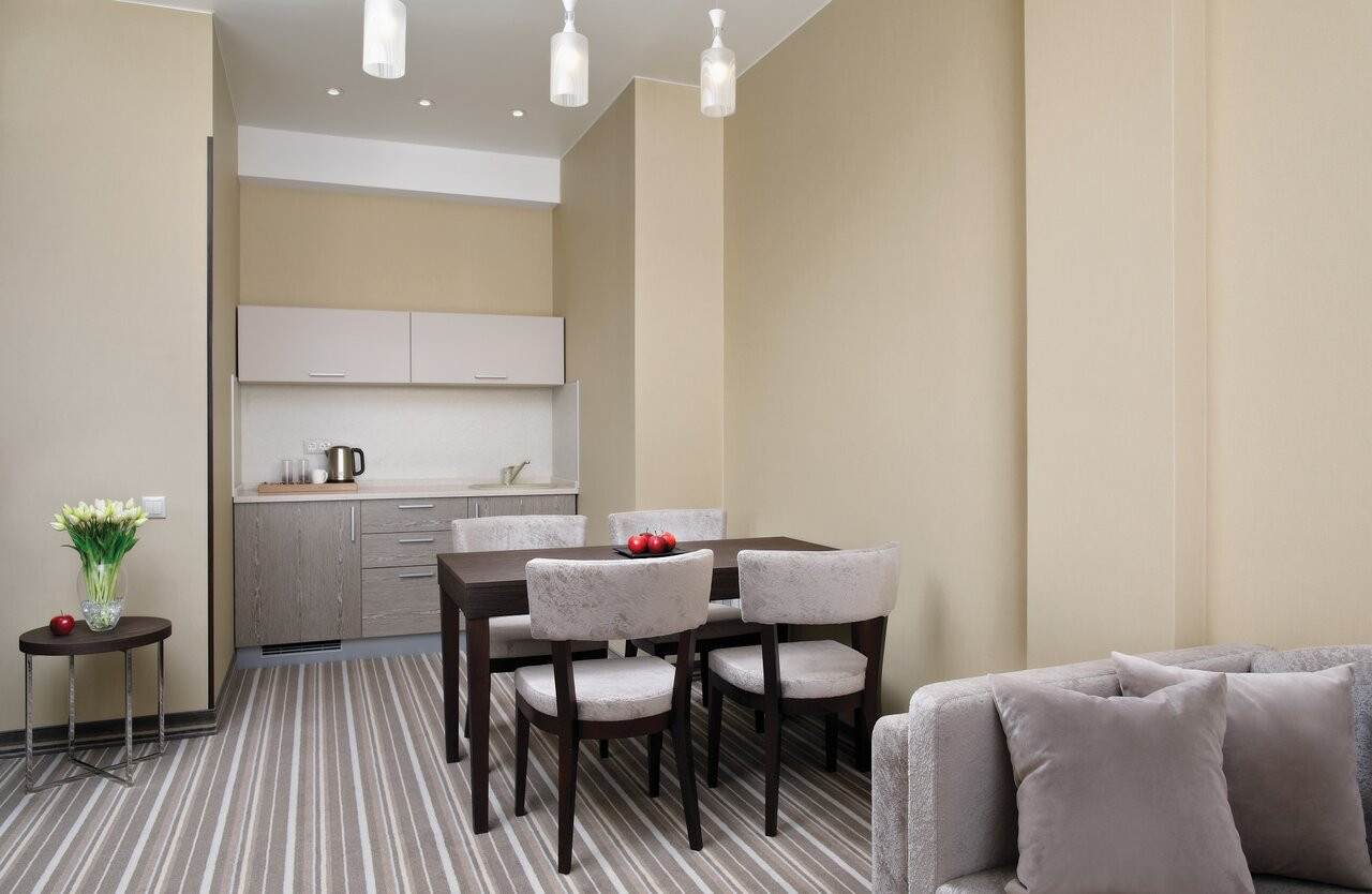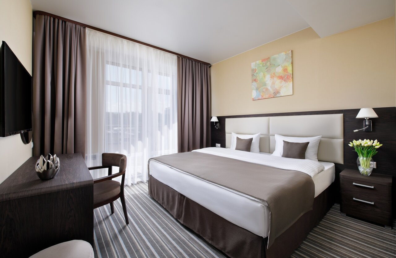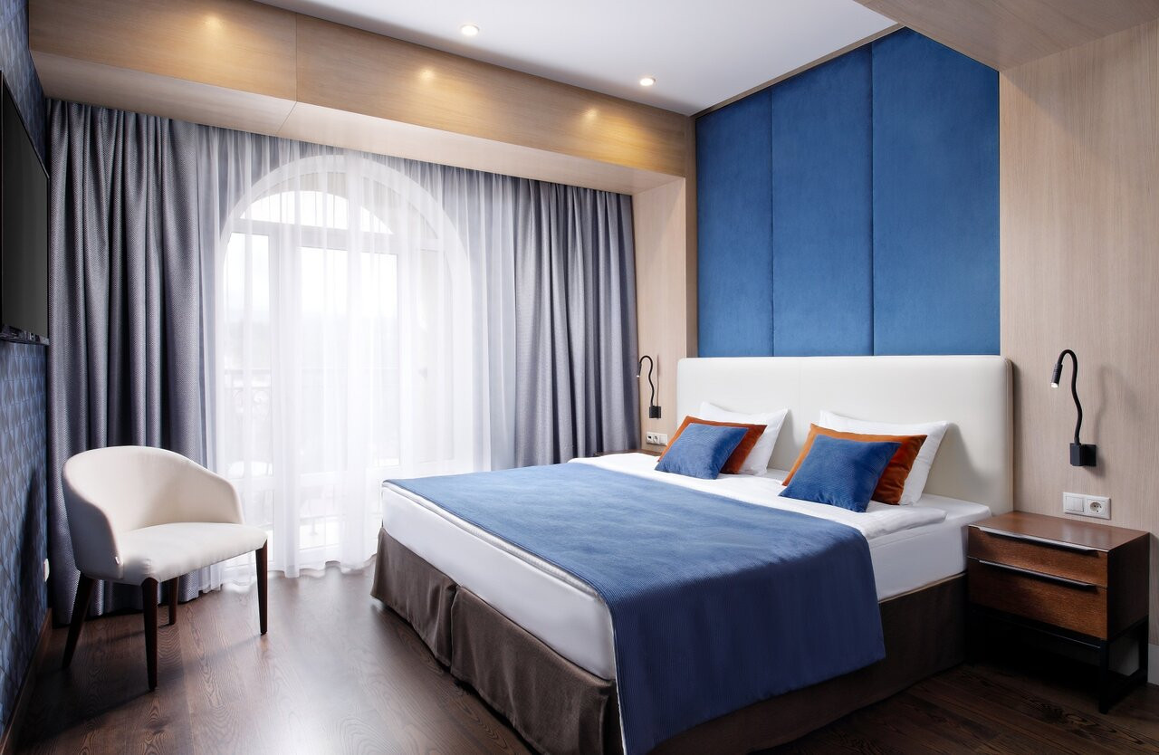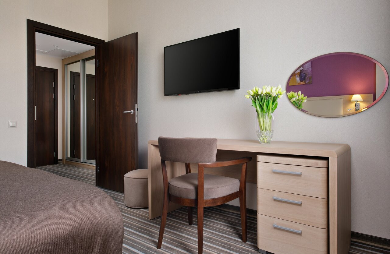 Новое девятиэтажное здание курортного санатория рассчитано всего на 160 постояльцев, и каждый гость окружён заботой и вниманием. При заселении клиентам предлагается выбор из 79 комфортных номеров — от компактных до просторных, оборудованных мини-кухней.