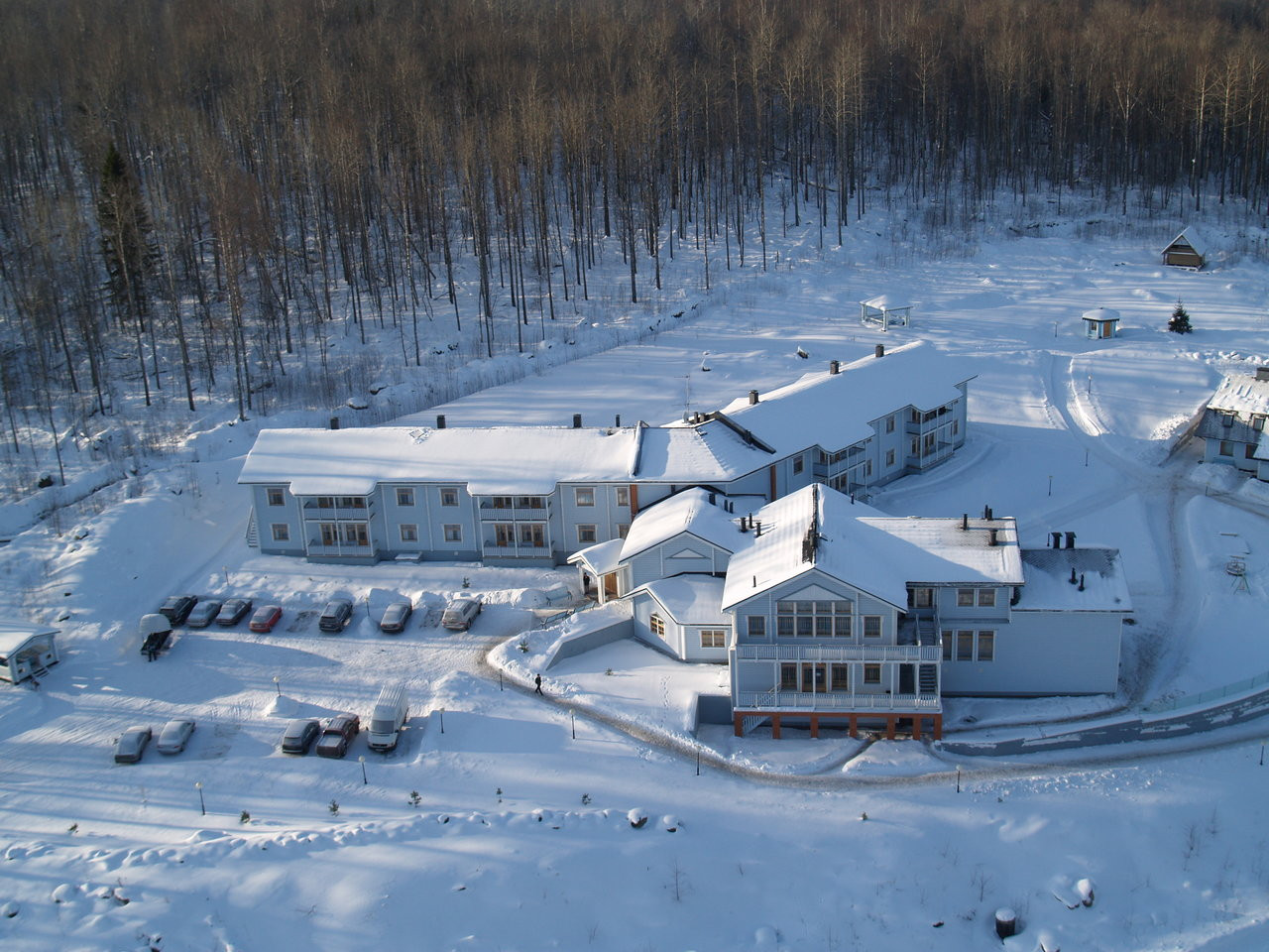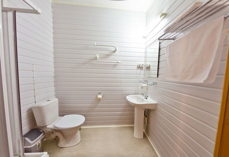 Корпус Санатория – это двухэтажное здание, построенное по скандинавским технологиям из экологически чистого дерева, в котором располагаются комфортабельные номера, лечебно-оздоровительный центр, ресторан и бассейн. Окружение – ухоженная территория с открытыми беседками, закрытой беседкой для барбекю и русской дровяной баней.