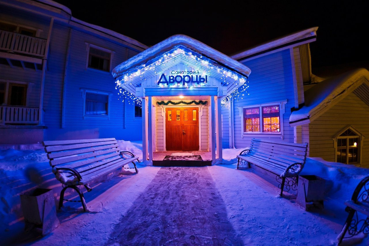 Санаторий "Дворцы" расположен в живописной местности в курортном поселке Марциальные воды. Санаторий окружен еловым и сосновым лесом с примесью осины и березы. Расстояние до Петрозаводска составляет 54 км. Близость санатория "Дворцы" к целебным источникам, сапропелевым иловым сульфидным грязям и залежам природного минерала шунгита создают особый микроклимат.
