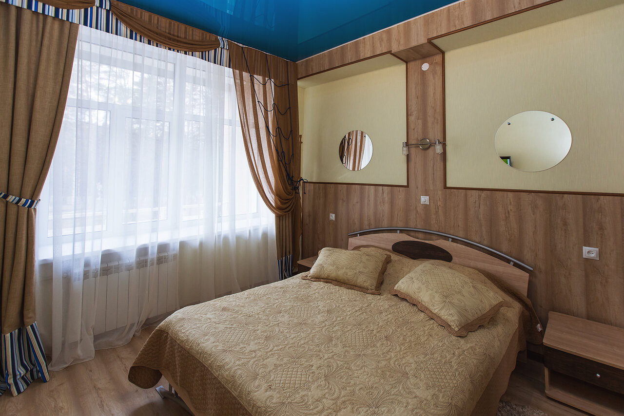 В 2002 году после прохождения добровольной сертификации услуг размещения, гостиничному хозяйству санатория было присвоено «две звезды». Пятиэтажный благоустроенный корпус №1 содержит 148 номеров. Санаторий располагает несколькими категорий комнат: стандартные одно- и двухместные номера I и II категории, номера дабл (двуспальная кровать) и номера класса «люкс».