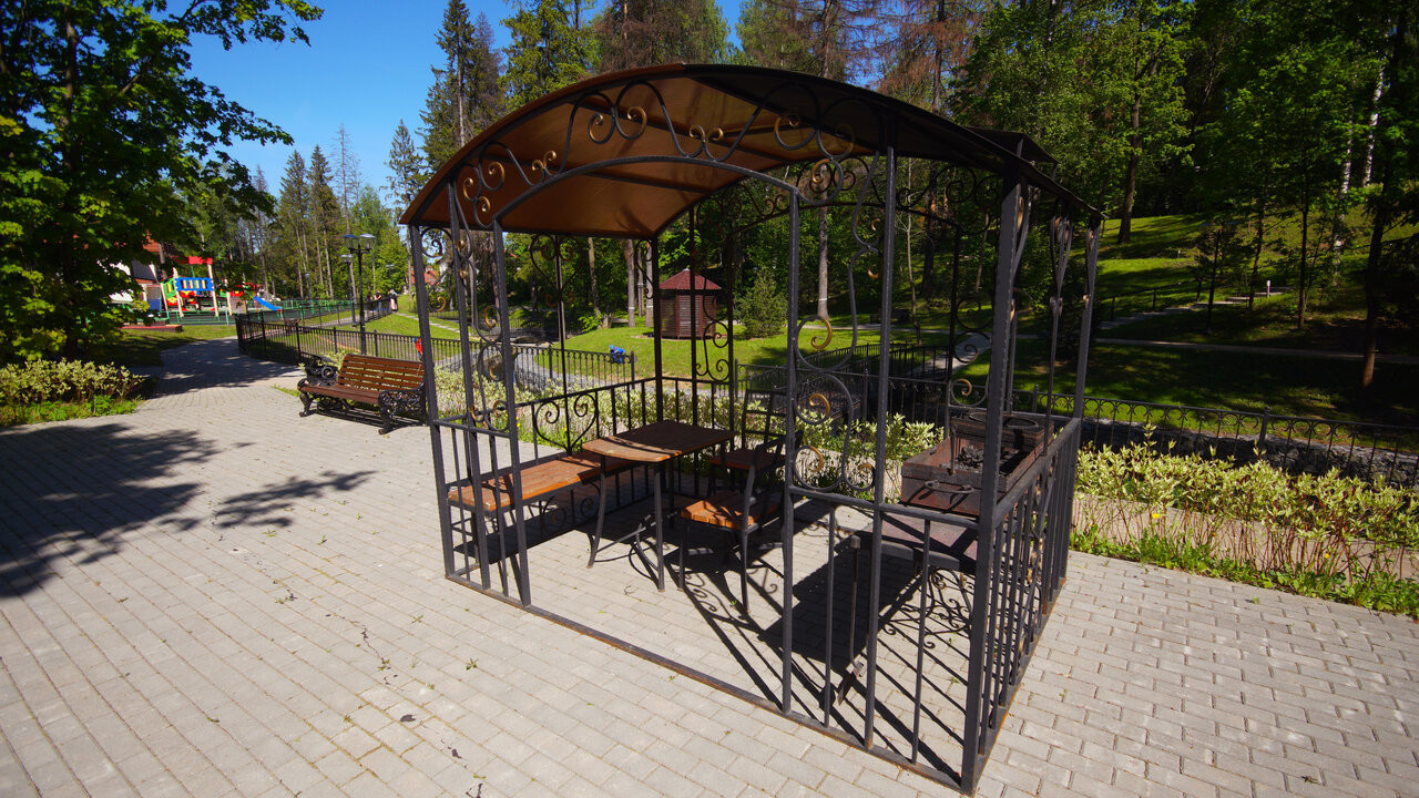 На территории площадью 14 га произрастают 50 видов хвойных и лиственных деревьев. Слегка холмистый ландшафт, красивая гранитная освещенная набережная, которая является изюминкой нашего отеля, располагают к прогулкам гостей в любое время суток.