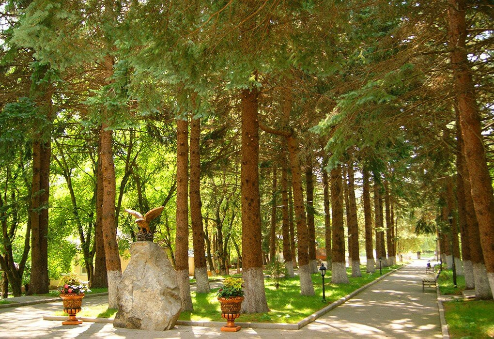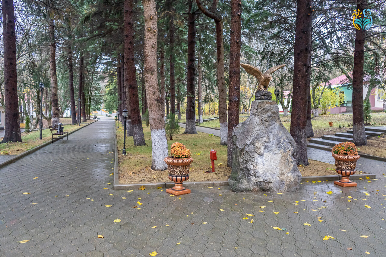 В самом сердце КМВ между Железноводском и Пятигорском на склоне горы Бештау, закрытый от шума городов и автомобильных трасс многолетними смешанными лесами заповедника на территории 6 га, находится пансионат с лечением «Геолог Казахстана».