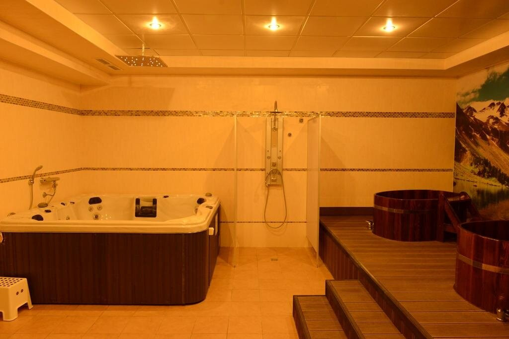 -: питание; не "швецкий"стол, а ограниченный ассортимент меню,накрывают уже на столик (приходилось заказывать еду за отдельную плату); не очень понравилось,как сделали массаж воротникой зоны (просто погладили); в джакузи слабый напор воды.