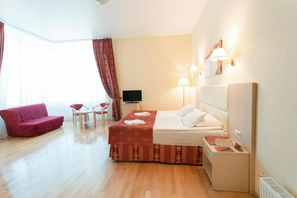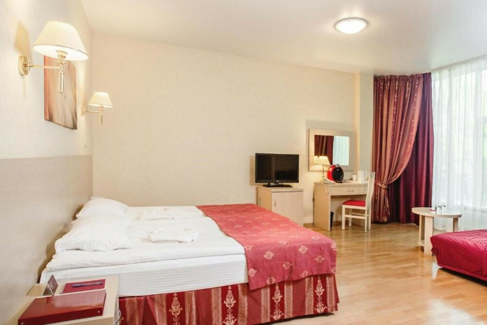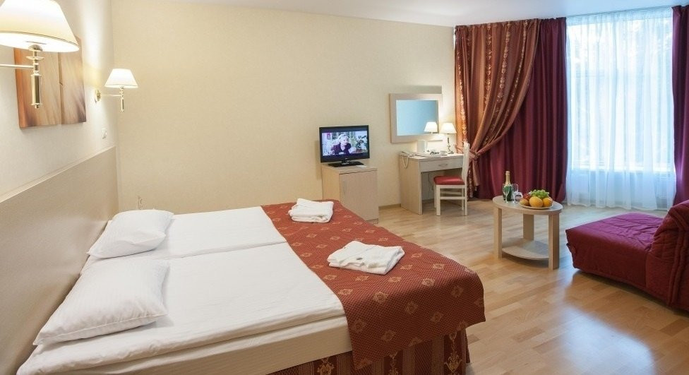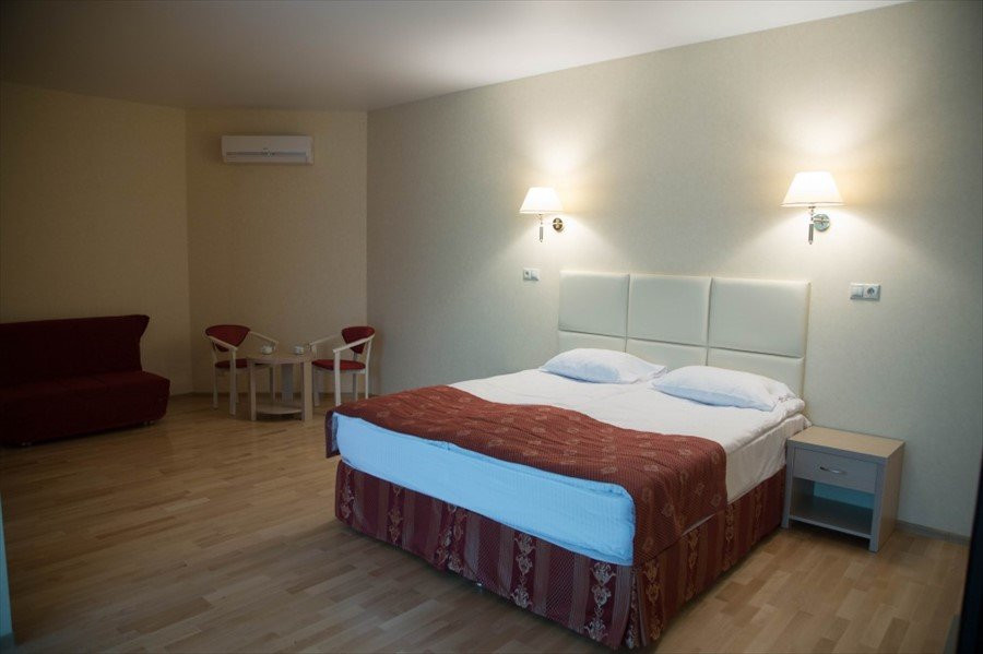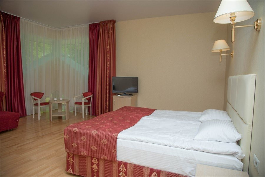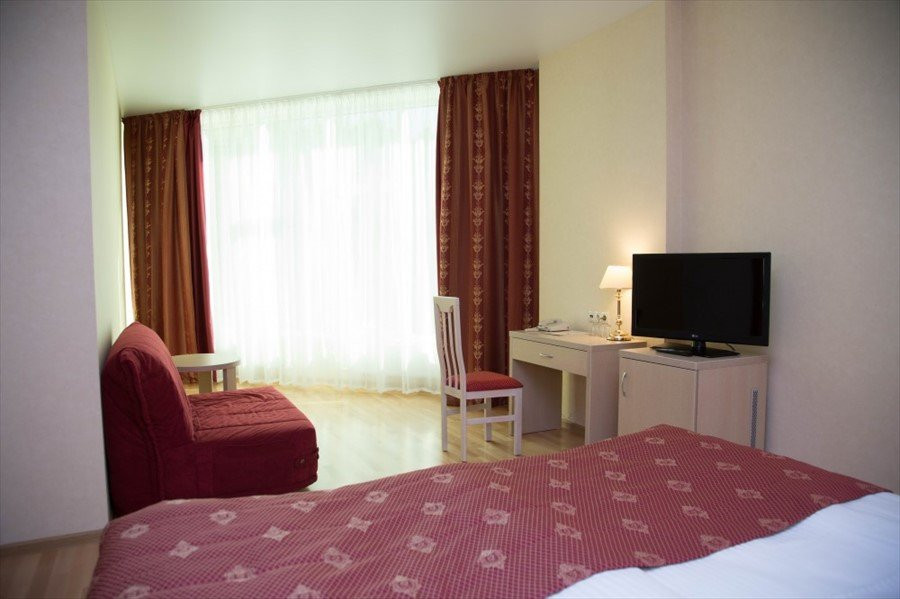 Очень понравилось.были с тремя детьми- в одном номере, места достаточно.можно взять раскладушку- большую, полноценную. Еда очень вкусная, выбор большой и для всех, бассейн для детей тёплый - и можно купаться с маленькими детьми. Сауна есть.погода была плохая - старшие 2 дня не выходили на улицу - но это не проблема- купались, ходили в кино,есть анимация для тех кто помладше- мастерклассы,сеансы мультиков, игровая комната для малышей, биллиард ( 150 р), теннисный стол- берите рокетки - есть спортзал . Очень удивил целый блок для здоровья- врачи,анализы,массажи,грязе и водолечение и тд ( цены правда не дешевле чем в Москве - но на то он и курорт). Основная масса- это пенсионеры (!!!!!!) и семьи с детьми,а так же тренера вывозят свои команды на сборы.нет тусовок и дискотек- все тихо мирно,чисто. Маленькая но очень продуманная компактная территория.детей можно выпустить и забыть. Недалеко есть храм- можно сходить. Где то рядом есть диски магазин- но он не нужен.крема всякие,предметы гигиены, шапку и тапки в бассейн, что то по мелочи- все можно