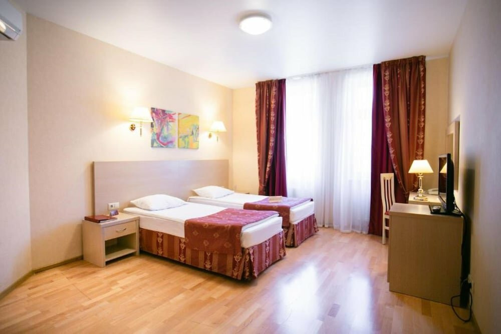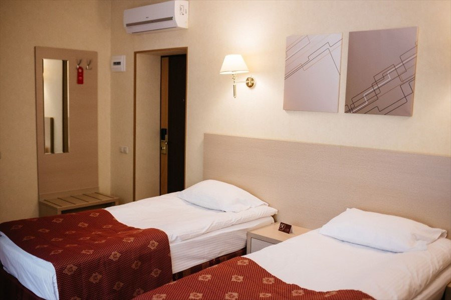 Номер: брали категорию Бизнес исходя из площади. Просторный. В номере чайник, кофе-машина (с двумя капсулами Нескафе), халаты, полотенца, мыло, шампунь/гель для душа. Убирают хорошо каждый день (влажная уборка в т.ч.), смена полотенец/постельного белья по желанию гостей. И тут минус звезда: в номере очень душно. Вентиляция не ощущается, даже в ванной. Балкона нет, есть окно - открывается нижней частью наружу, что небезопасно при наличии маленьких детей, и притока воздуха от него нет вообще. Включали кондиционер, в результате чего простуженный ребенок и взрослый.