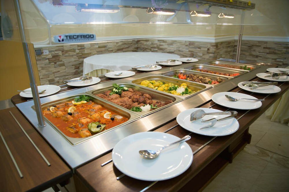 Питание: шведский стол, еда вкусная. Сырники, запеканка творожная, омлет, сосиски, каши (на воде и молоке), сыр/колбасы, варенья, сухие завтраки с молоком или йогуртом, жаркое с мясом, припущенные овощи, гречка, рис, картофель (с вариациями), рыба, котлеты, овощные/мясные/рыбные салаты (заправки отдельно), десерты/фрукты; есть бар (за отдельную плату). В детском меню: макаронные изделия (бантики), припущенные цветная и брокколи (я бы сказала даже, бланшированные, настолько твердые), гречка, куриные котлеты, котлеты по-домашнему и ёжики, куриное суфле. Но, практически без соли/приправ, безвкусное.