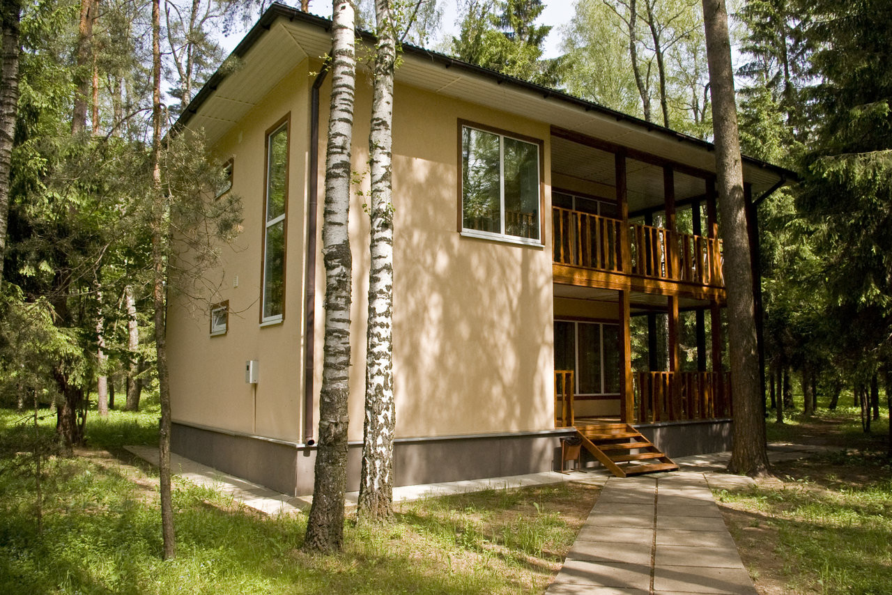 - 2-х этажные жилые корпуса гармонично вписаны среди деревьев, часть номерного фонда расположена в двух десятках избушках;