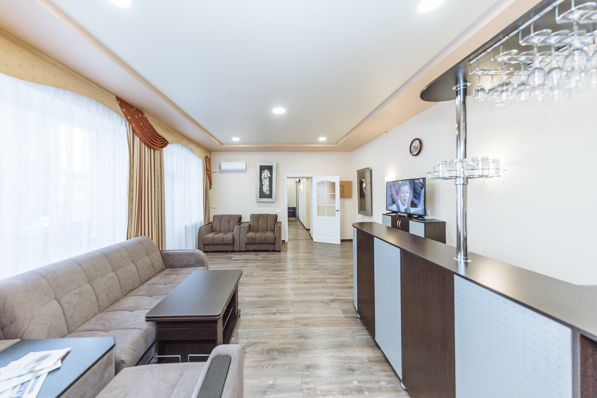 Природа замечательная, территория открыта, ходят местные, комнаты нужно закрывать. Жили в номере стандарт 3 корпуса, не плохой, тепло, матрасы жёсткие, подушки сбитые, санузел маленький, уборка хорошая. Питание хорошее. Есть диетический зал. Лечение не плохое, но мало дают процедур или совсем короткие. Медперсонал уважительно относиться к отдыхающим. Грязь и вода своя. Рекомендую для отдыха и лечения.