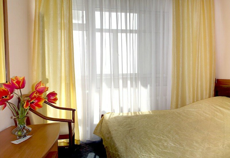 Санаторий хороший, стоит в прекрасном месте на горе. Если проживать в главном корпусе, то вид будет на город. Номер убирают раз в день. Персонал доброжелательный. Питание в очень хорошее, похудеть не удалось, хоть и был стол номер 5.