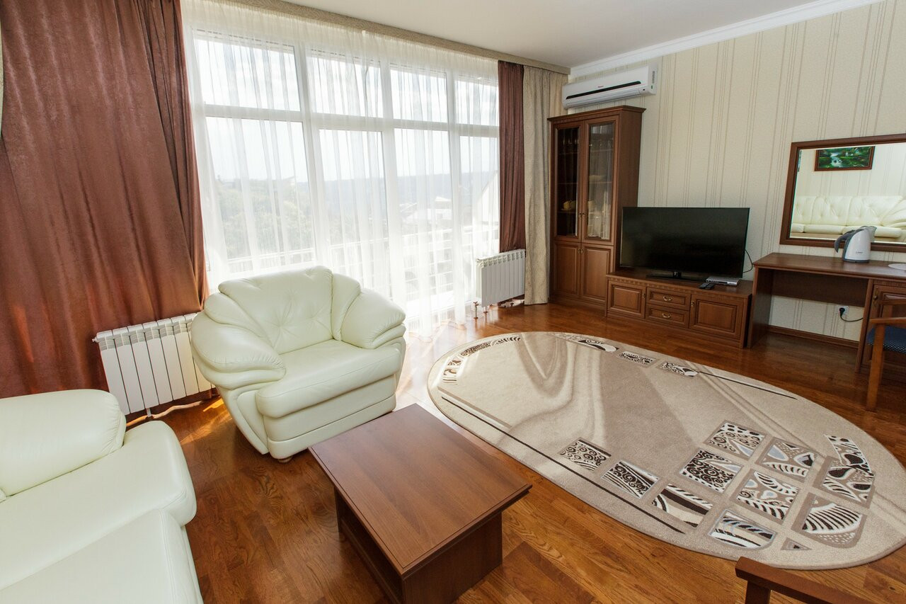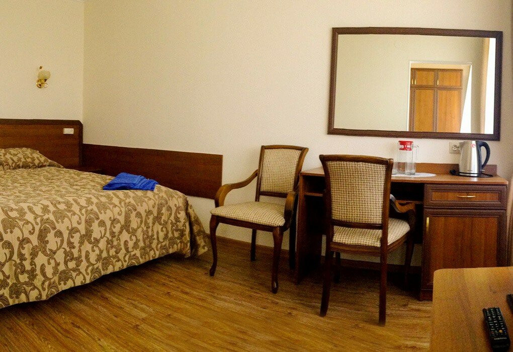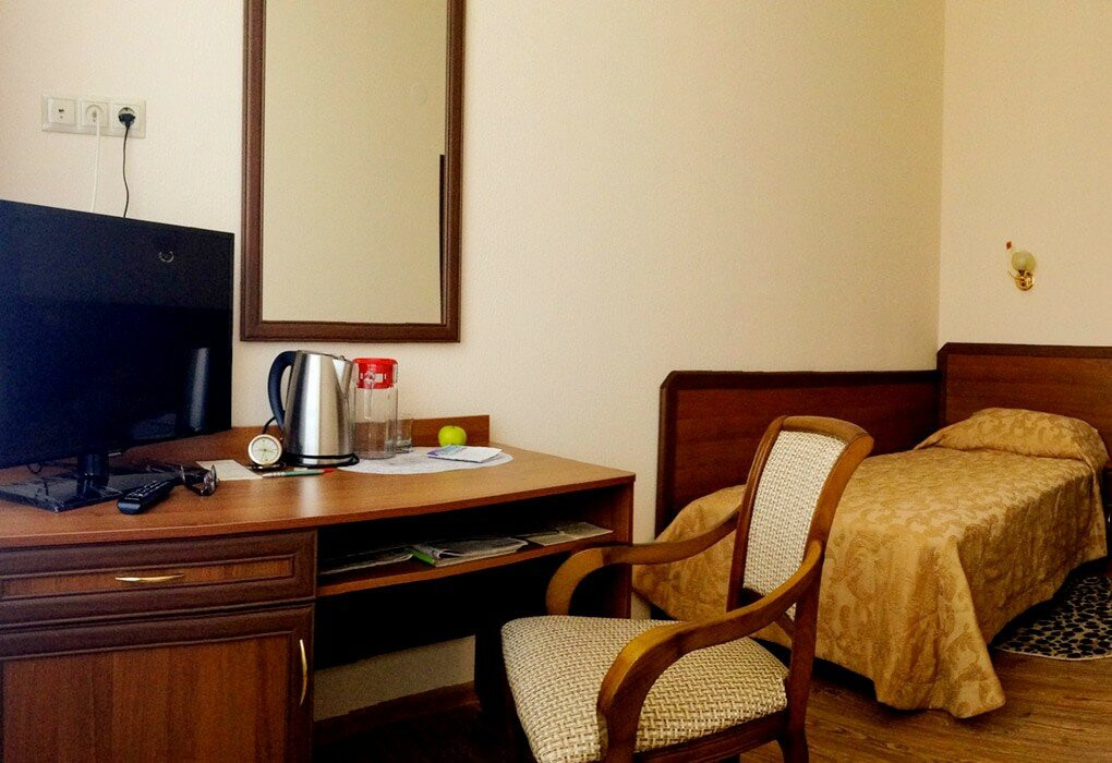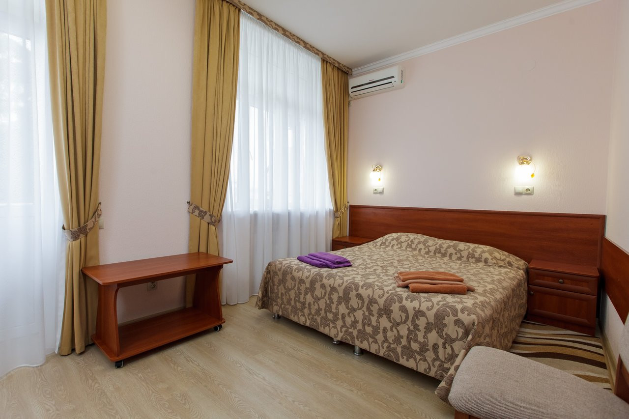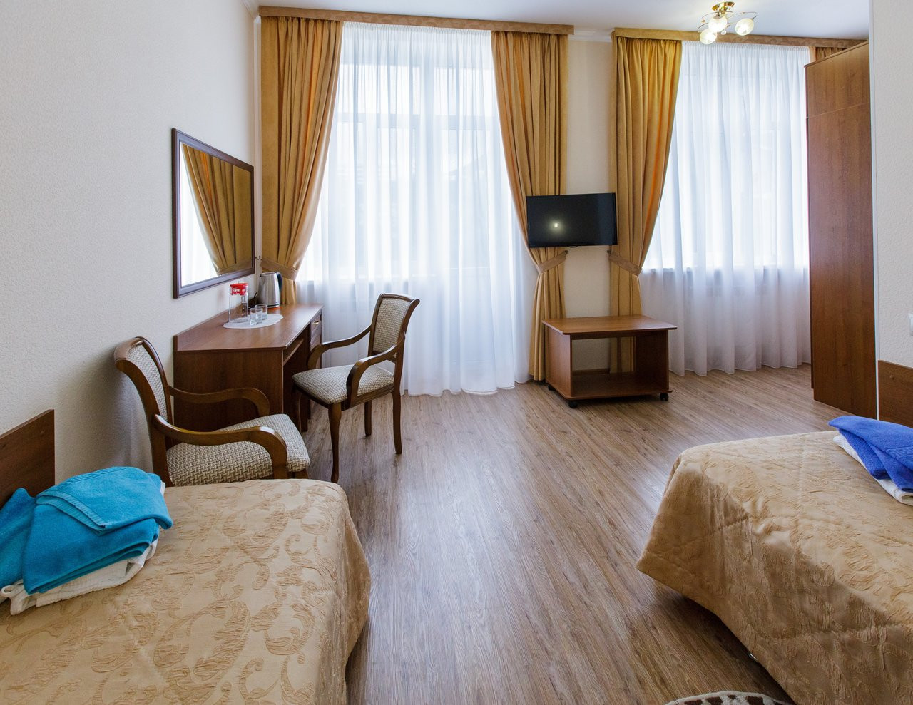 Санаторий представлен двумя спальными корпусами и лечебным корпусом. Номера одно-, двухместные, со всеми удобствами, оснащенные телевизорами, холодильниками, сплит-системами, индивидуальными сейфами.