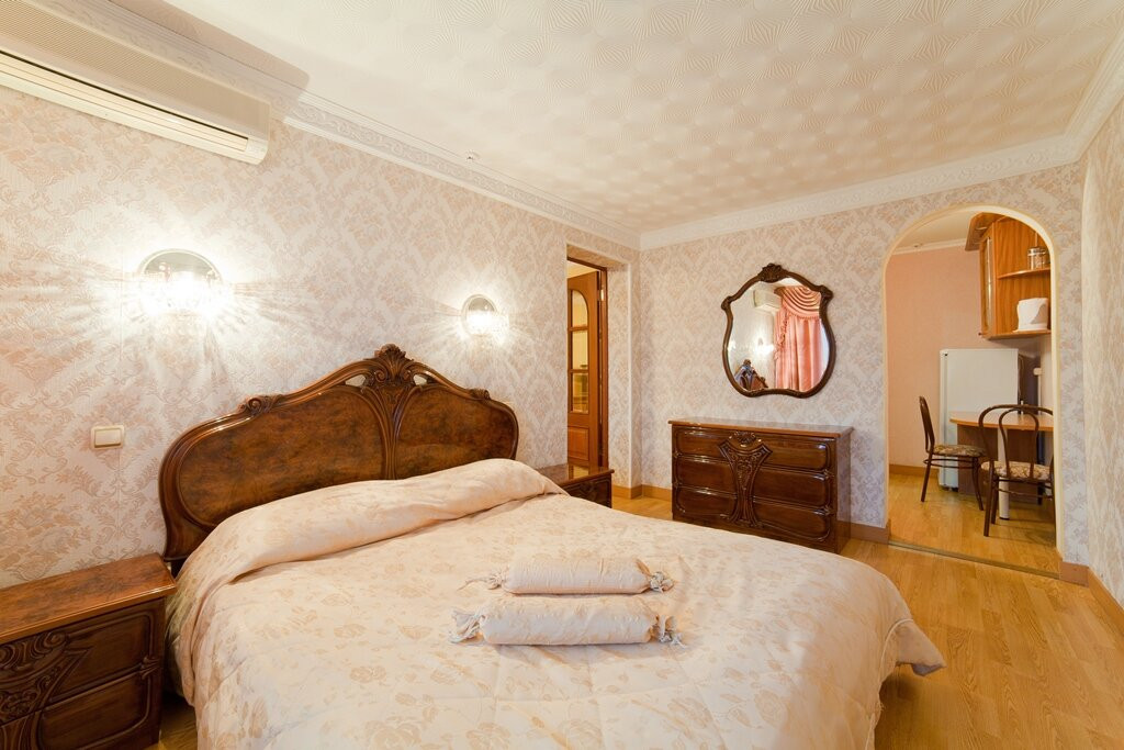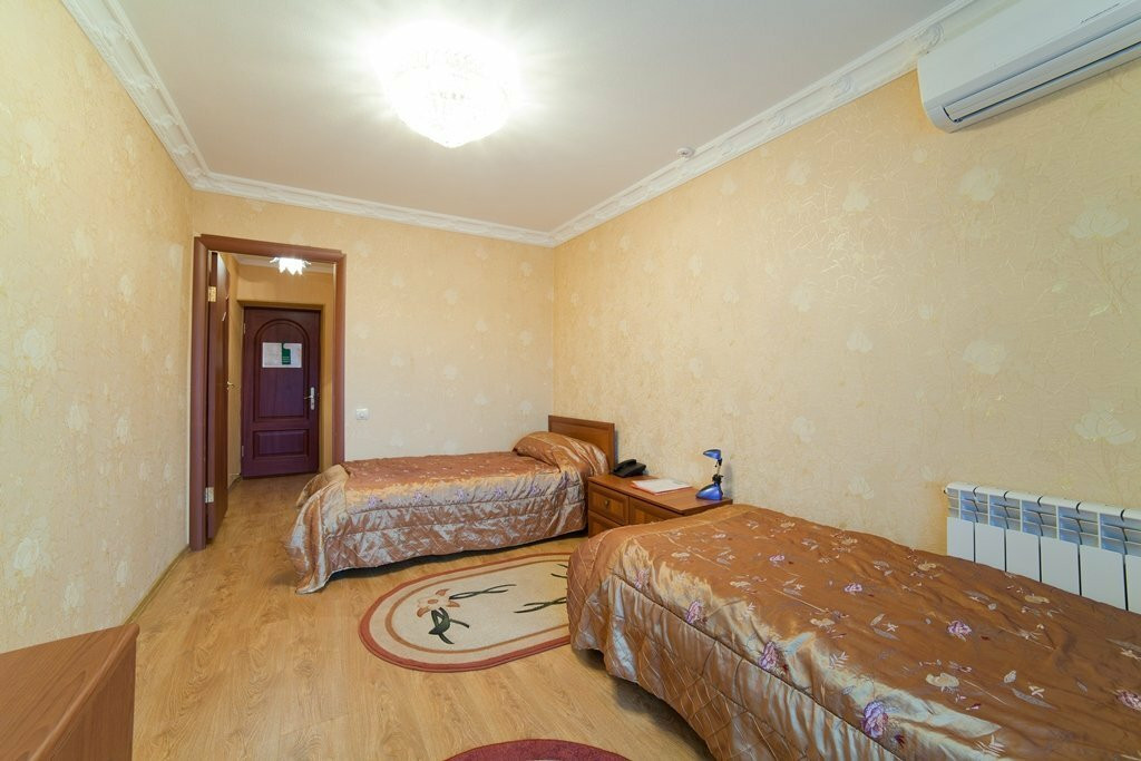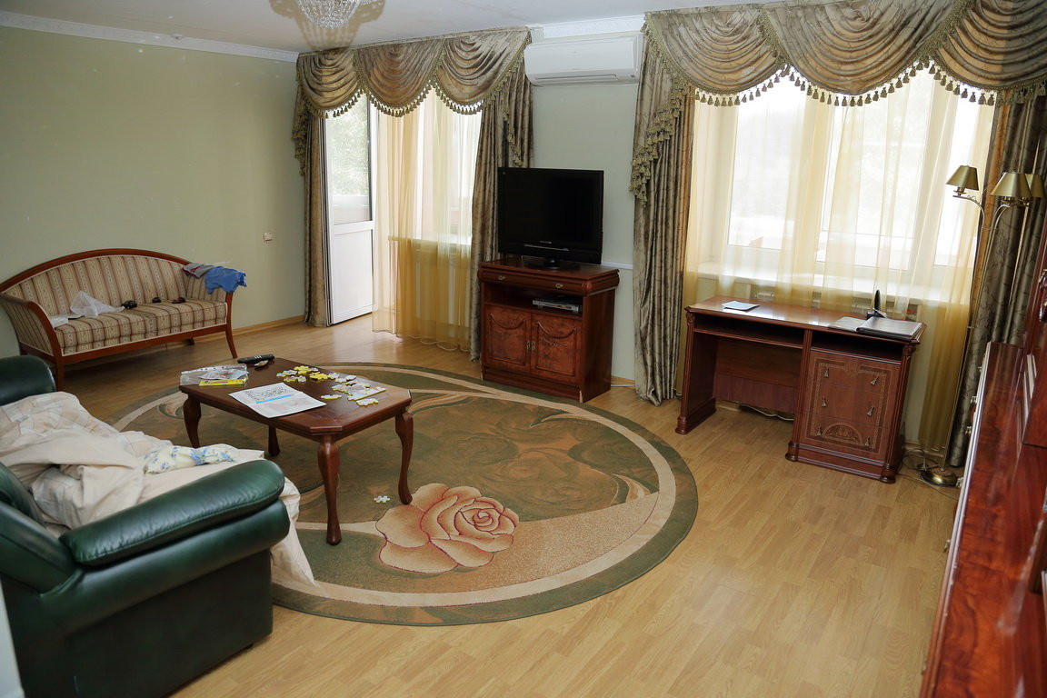 На первый взгляд, особенно первый этаж, ресепшен и номера класса VIP производят впечатление шикарного санатория. Но чем выше, тем больше напоминает советские времена. Но это не напрягает, кроме как представление о том, сколько грязи и бактерий в ковриках в номерах и коридорных дорожках. В бассейне специально затемненный свет, чтобы не было видно грязной, мутной воды. Фильтры во время посещения бассейна не работали. Сауна платная, но сервиса нет, кроме как застиранных старых простыней.
