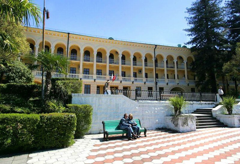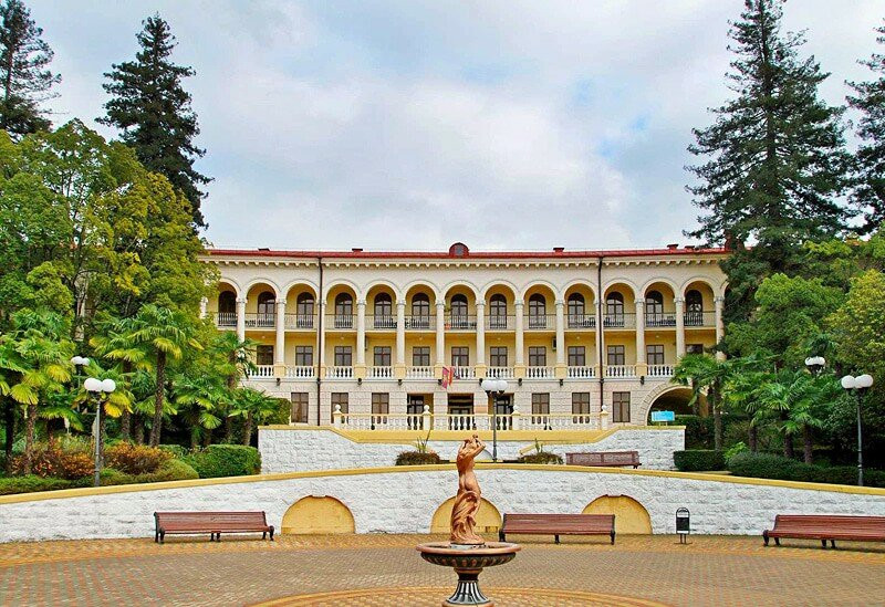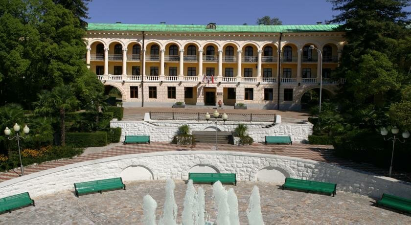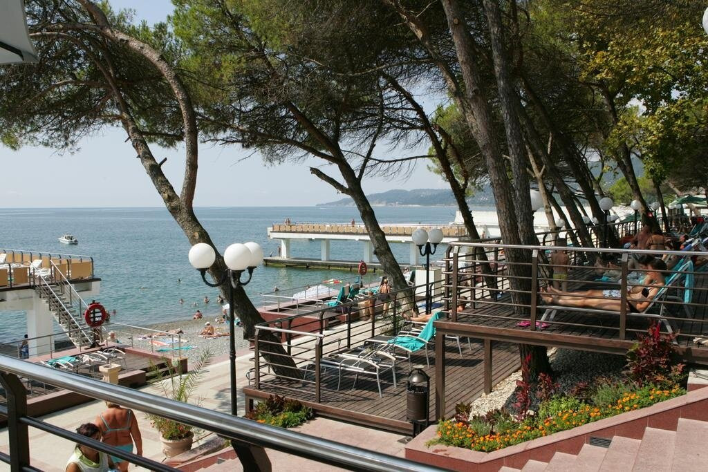 Санаторий занимает территорию собственного дендрария в 15 га и находится всего в 100 м от пляжа, что способствует спокойного и размеренному отдыху в окружении живописных горных вершин и морского побережья.