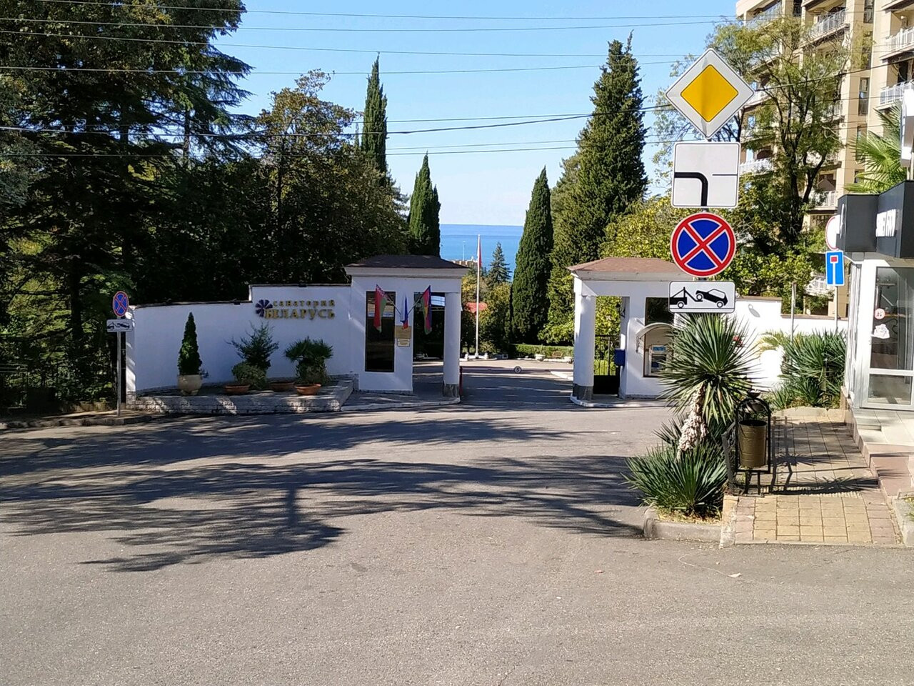 Санаторий расположен на первой береговой линии и имеет 2 корпуса — «Приморский» и «Главный». Санаторий «Беларусь» уютно расположен на юго-западном склоне прибрежной полосы Черного моря в 50 метрах от пляжа, в тени вековых сосен и гималайских кедров.