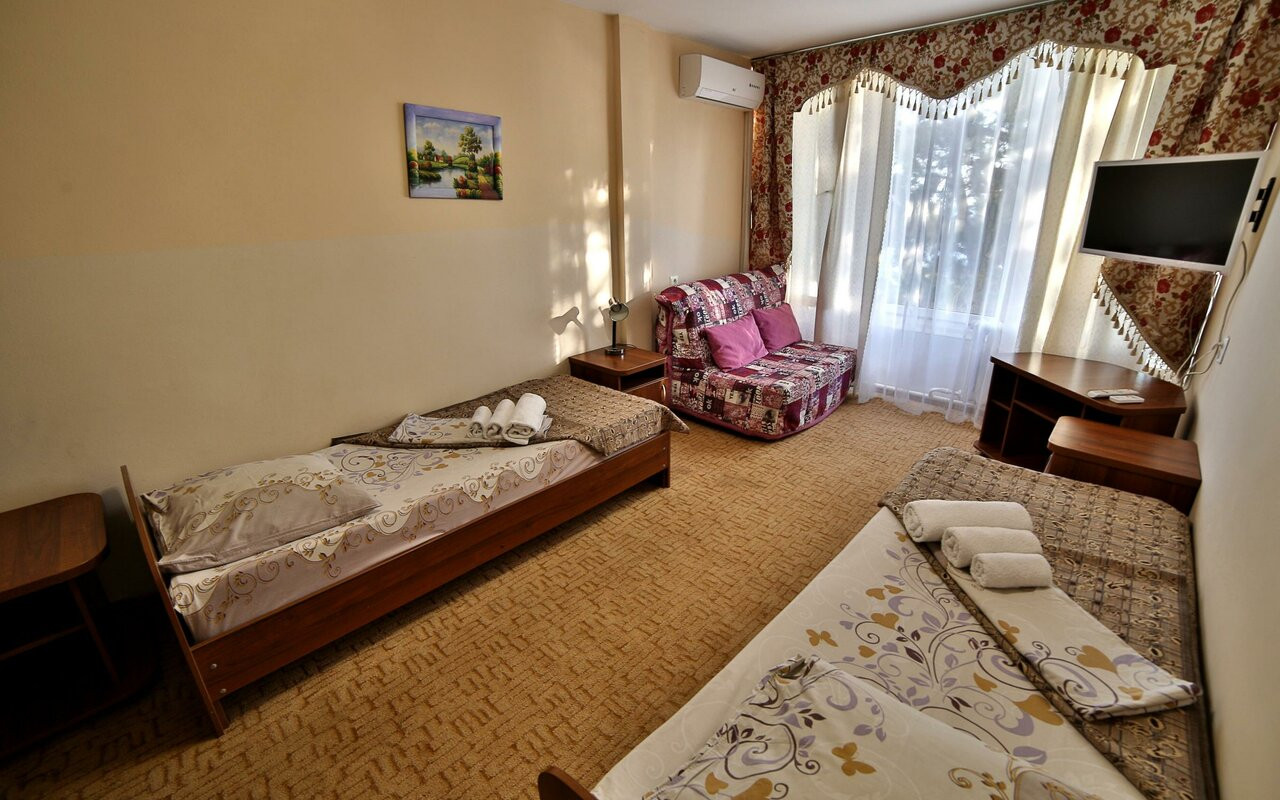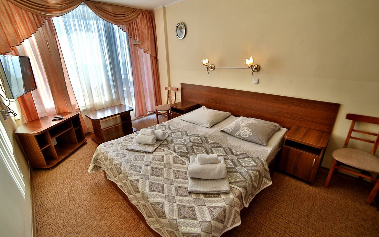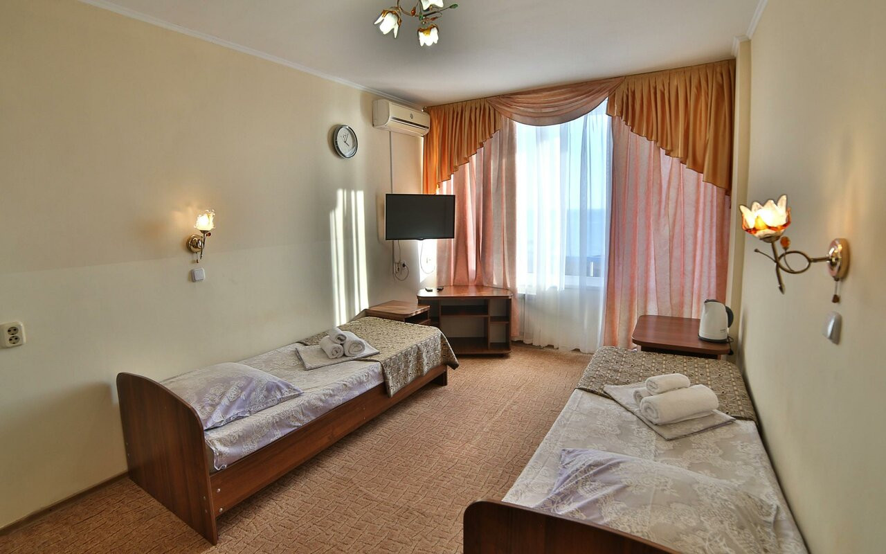 Бассейн с морской водой, немного хлорированной, всегда в доступности, в любой шторм. Роскошная тёплая вода без водорослей, булыжников и прочих неожиданностей, которые предлагает море в рамках берега, относящегося к пансионату. Мы купались там 2 раза и... всё)) поселились в бассейне. Поскольку он огромен, то друг другу никто не мешает. Еда как в заводской столовой советского времени. Что-то вкусно, что-то не очень. Но разные фрукты каждый день. Номера на 3 этаже подороже и получше. У нас был стандарт. В случае каких-то недочётов их исправляли довольно быстро. Вид с балкона на море незабываем... Интернета нет, только вайфай возле стойки администрации. Персонал вполне адекватен и приятен. Отель удачно расположен в Сочи. Можно и вернуться, пожалуй....