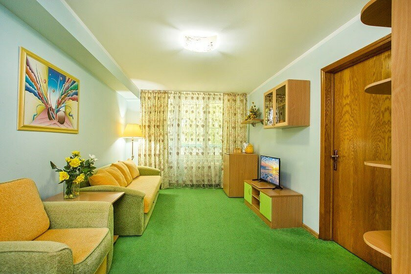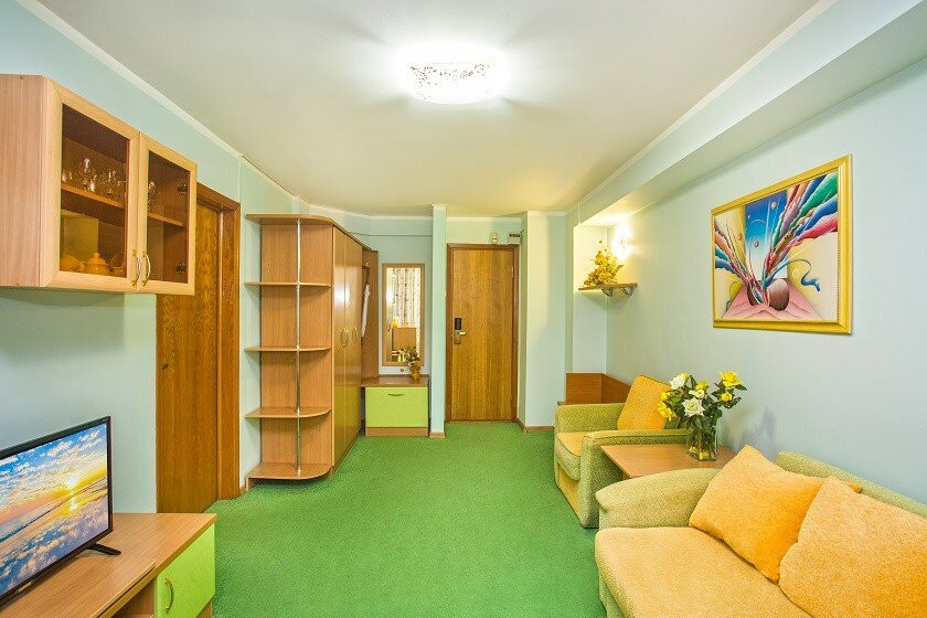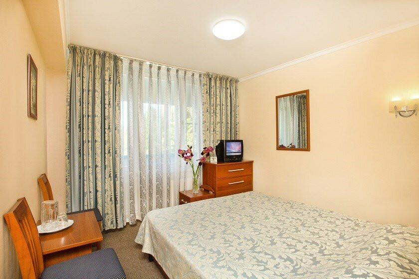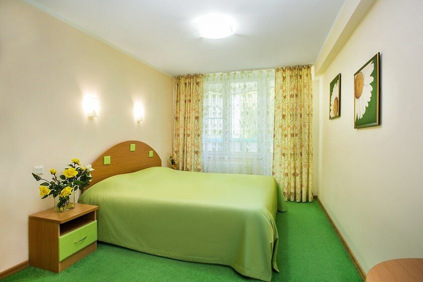 Отдыхающие размещаются в комфортабельных номерах со всеми удобствами. При санатории функционирует собственный медицинский центр, специализирующийся на лечении заболеваний сердца и сосудов, опорно-двигательного аппарата, нервной системы, органов дыхания, а также SPA-комплекс с сауной, массажным и косметологическим кабинетами.